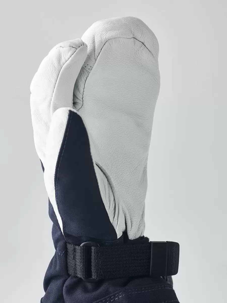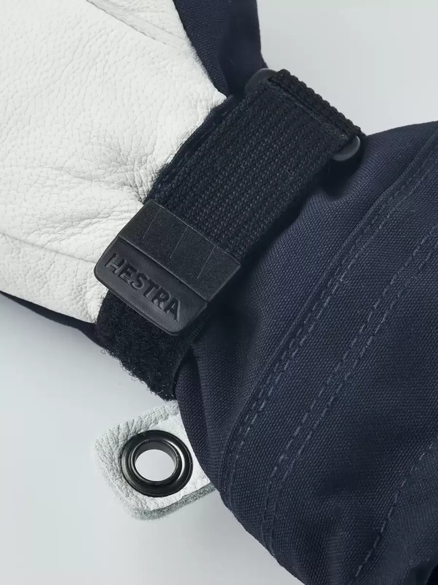Hestras Heli Ski-handske skapades ursprungligen för kanadensiska skidguider som behövde en pålitlig, varm skidhandske för långa dagar med snö och kyla. Vad kan vara bättre för skidglada juniorer som ger sig ut i skogen, pisterna eller parken så fort de får en ledig minut? Precis som vuxenversionen är denna 3-fingers barnhandske sydd i slitstarkt getskinn och väderbeständig 3-lagers polyamid. Fleecefodret är avtagbart och har värmande G-loft syntetisk isolering. En handledsrem minskar risken att tappa bort en handske när du tar av den i en lift för att använda en telefon eller justera skidglasögonen. Det finns också en öljett och fingerögla för att hänga upp handsken. En slitstark, värmande vinterkamrat i alla typer av skidterräng hela säsongen. Som 3-fingersversion är den perfekt när du behöver en handske med lite extra värme samtidigt som du bibehåller fingertoppskänslan. Finns även som vante och i en femfingersversion.
