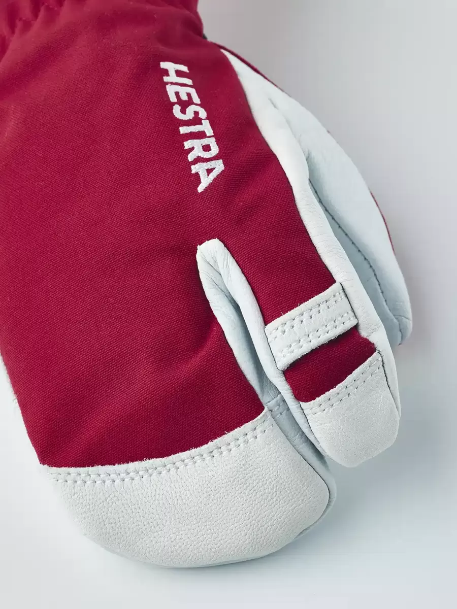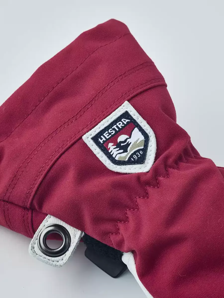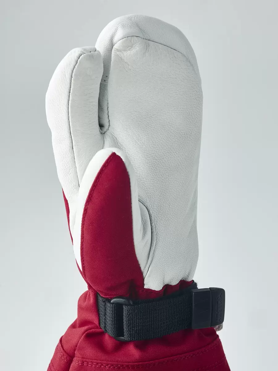 Hestras Heli Ski-handske skapades ursprungligen för kanadensiska skidguider som behövde en pålitlig, varm skidhandske för långa dagar med snö och kyla. Vad kan vara bättre för skidglada juniorer som ger sig ut i skogen, pisterna eller parken så fort de får en ledig minut? Precis som vuxenversionen är denna 3-fingers barnhandske sydd i slitstarkt getskinn och väderbeständig 3-lagers polyamid. Fleecefodret är avtagbart och har värmande G-loft syntetisk isolering. En handledsrem minskar risken att tappa bort en handske när du tar av den i en lift för att använda en telefon eller justera skidglasögonen. Det finns också en öljett och fingerögla för att hänga upp handsken. En slitstark, värmande vinterkamrat i alla typer av skidterräng hela säsongen. Som 3-fingersversion är den perfekt när du behöver en handske med lite extra värme samtidigt som du bibehåller fingertoppskänslan. Finns även som vante och i en femfingersversion.
