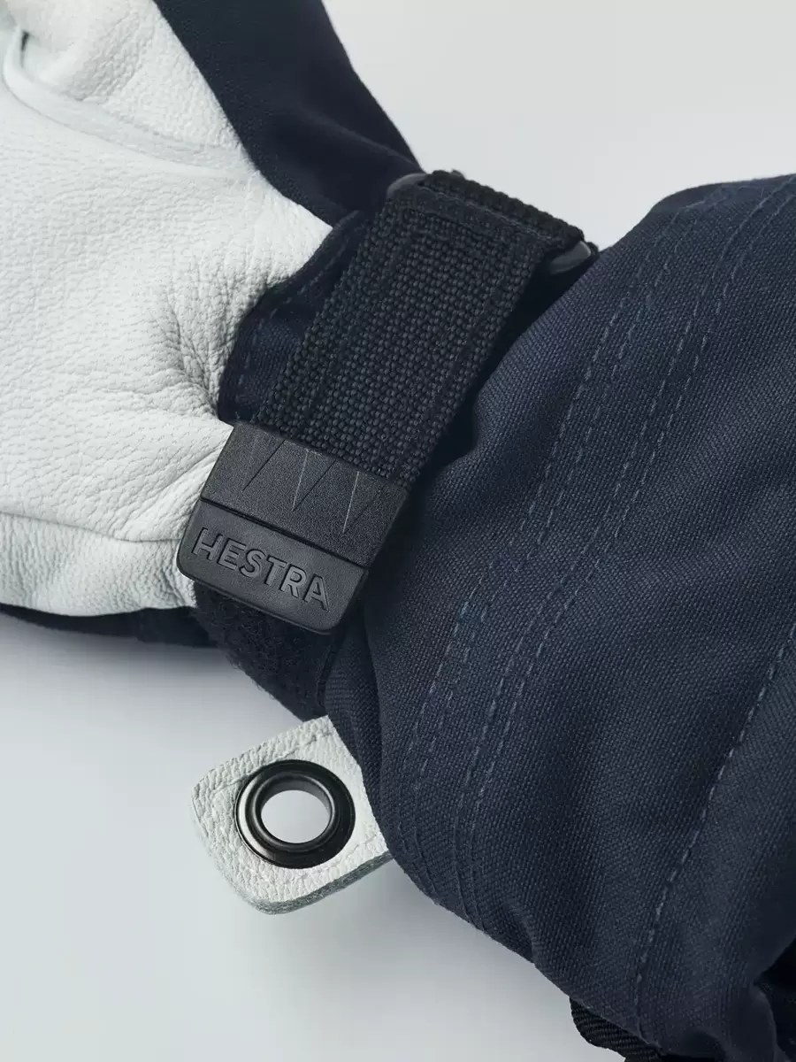 Hestras Heli Ski-handske skapades ursprungligen för kanadensiska skidguider som behövde en pålitlig, varm skidhandske för långa dagar med snö och kyla. Vad kan vara bättre för skidglada juniorer som ger sig ut i skogen, pisterna eller parken så fort de får en ledig minut? Precis som vuxenversionen är barnhandsken sydd i slitstarkt getskinn och väderbeständig 3-lagers polyamid. Fleecefodret är avtagbart och har värmande G-loft syntetisk isolering. En handledsrem minskar risken att tappa bort handsken när du tar av den i en lift för att använda en telefon eller justera skidglasögonen. Det finns också en öljett och fingerögla för att hänga upp handsken. En slitstark, värmande vinterkamrat i alla typer av skidterräng hela säsongen. Finns även som vante och i en trefingerversion.