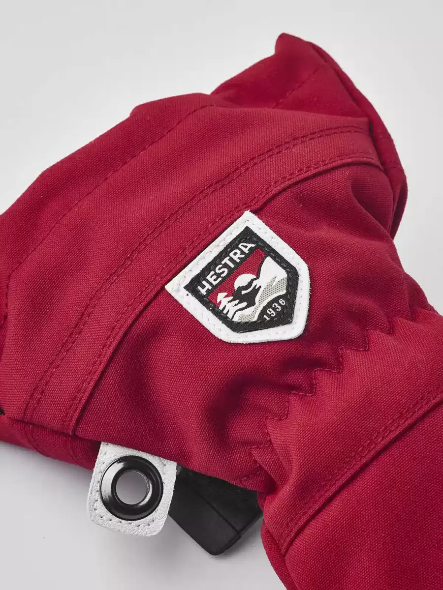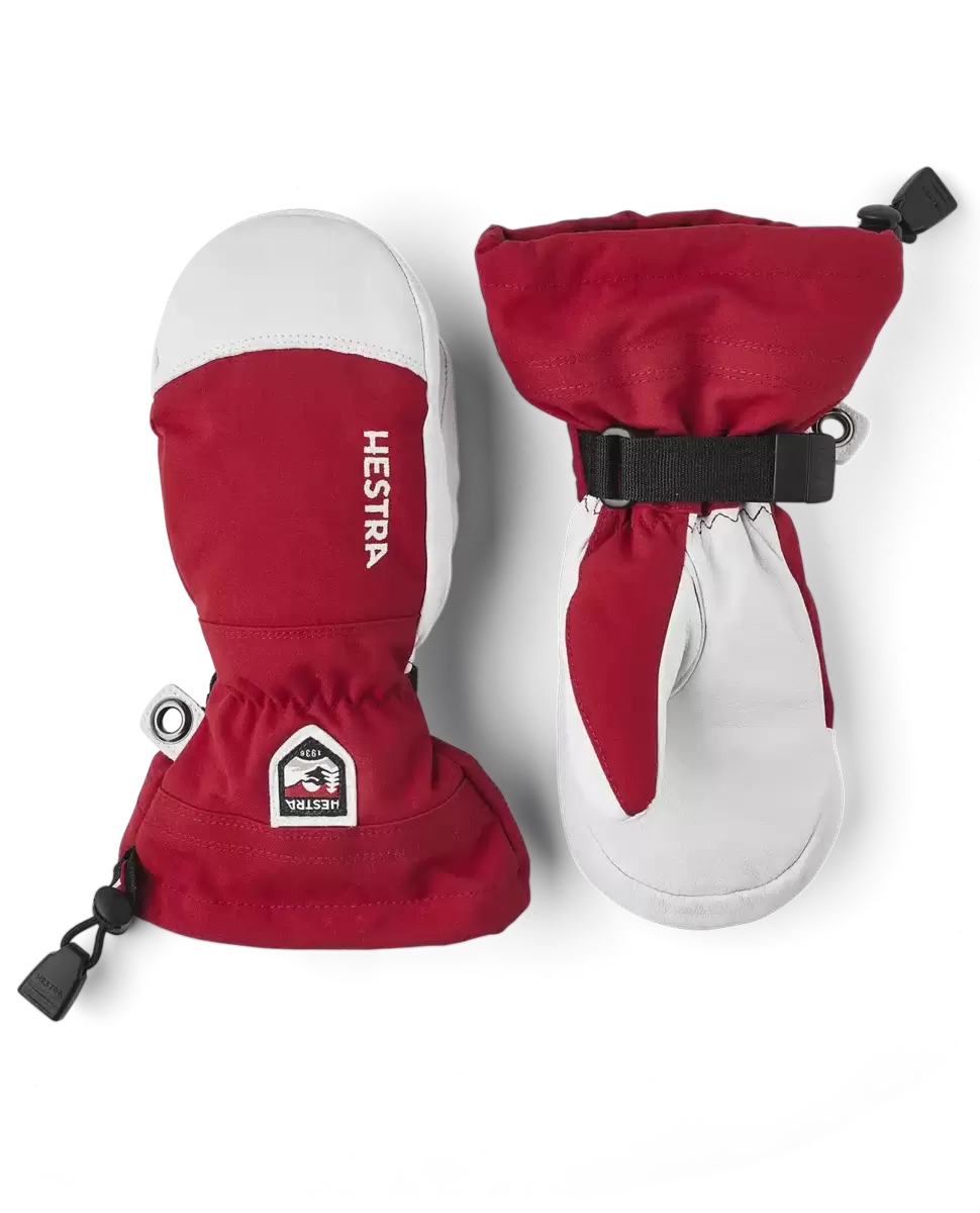 Hestras Heli Ski-handske skapades ursprungligen för kanadensiska skidguider som behövde en pålitlig, varm skidhandske för långa dagar med snö och kyla. Vad kan vara bättre för skidglada juniorer som ger sig ut i skogen, pisterna eller parken så fort de får en ledig minut? Precis som vuxenversionen är barnvanten sydd i slitstarkt getskinn och väderbeständig 3-lagers polyamid. Fleecefodret är avtagbart och har värmande G-loft syntetisk isolering. En handledsrem minskar risken att tappa bort en handske när du tar av den i en lift för att använda en telefon eller justera skyddsglasögonen. Det finns också en ögla för att hänga upp vanten. Som vante ger den lite mer värme för frusna fingrar men den finns även i tre- och femfingersversioner. En slitstark, värmande vinterkamrat i alla typer av skidterräng hela säsongen.