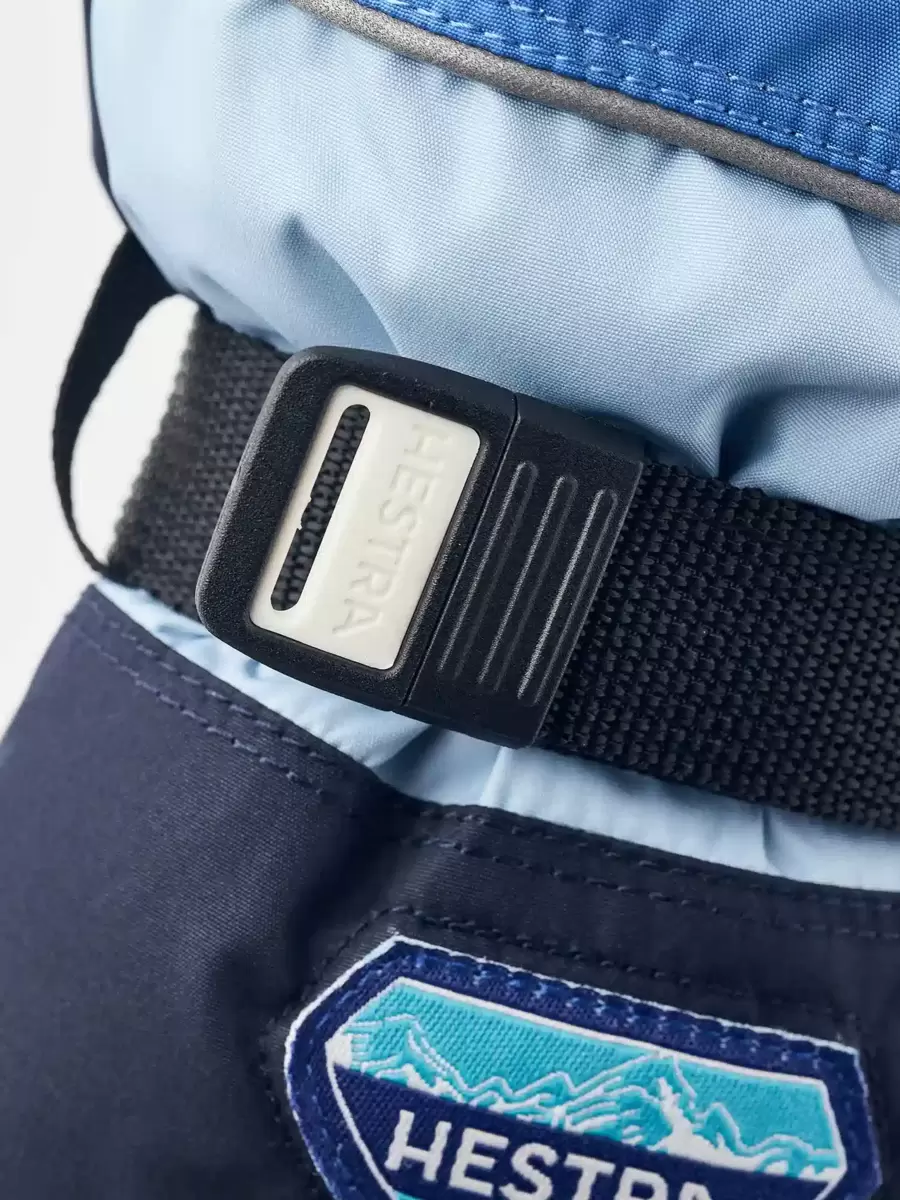 En slitstark vante för unga upptäcktsresande utomhus i alla väder. Ett vattentätt CZone-membran stoppar vätan samtidigt som det transporterar bort fukt från insidan. Den breda mudden har en elastisk stängning som förhindrar att snö kommer in och gör den lättare att ta på. Mjukt fleecefoder med Primaloft Gold syntetisk isolering för värme under kyliga vinterdagar. Utsedd till ”Bäst i test” av Testfakta.