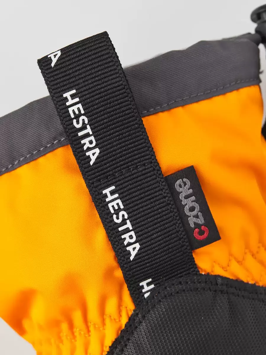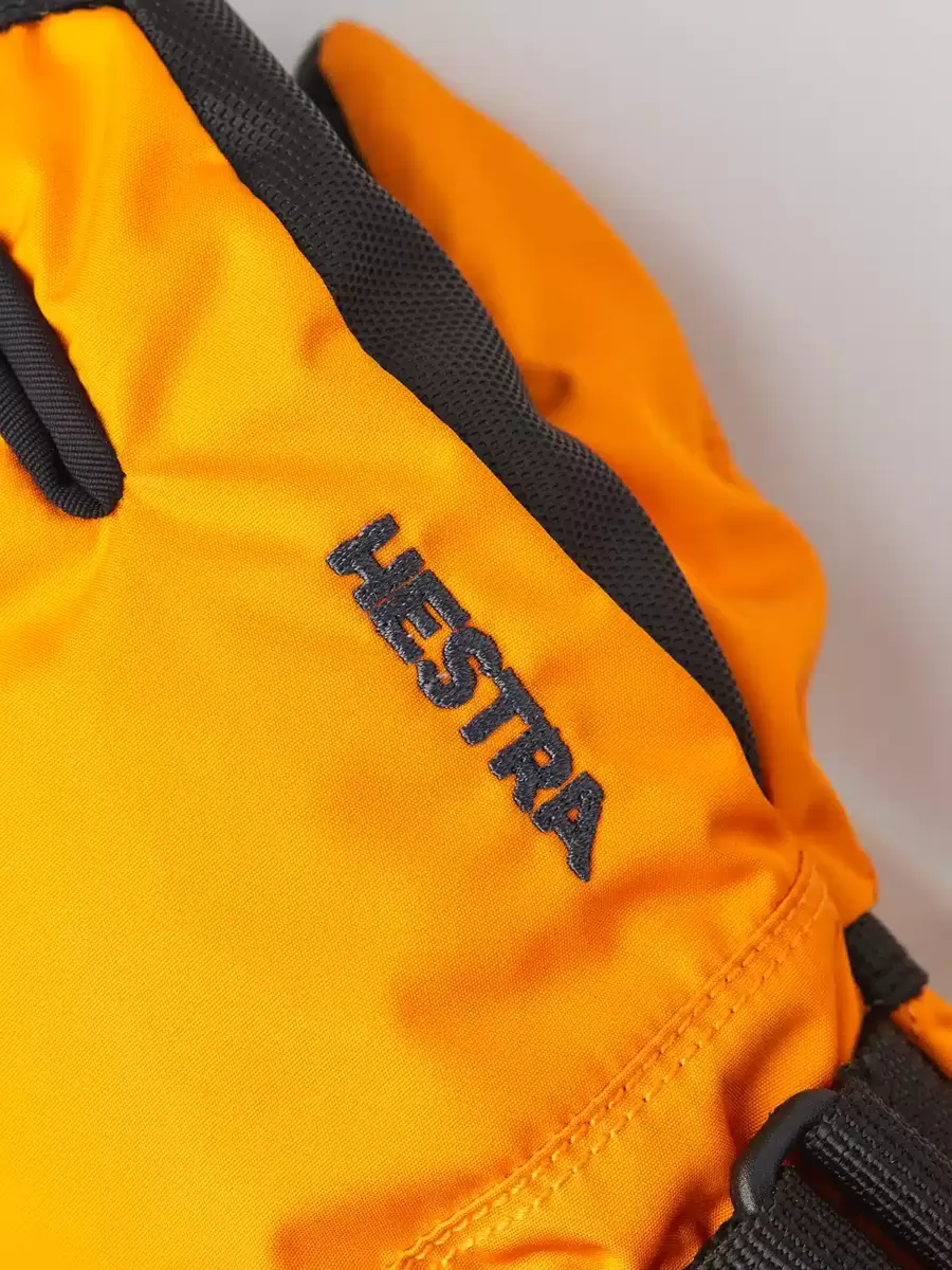 En varm och bekväm barnhandske för skidåkning, lek och utomhusaktiviteter i kallt vinterväder. En av Hestras mest populära juniorhandskar, sydd i slitstark polyester med ett vattentätt, andningsbart CZone-membran och en längre mudd för att hålla snön ute. Fingertopparna och handflatan är förstärkta med PU-belagt syntetmaterial för extra styrka och grepp i stavar, pulkor och annan vinterutrustning. Fodret är tillverkat av polyesterfleece med varm syntetisolering. Finns även som vante och i en trefingerversion.