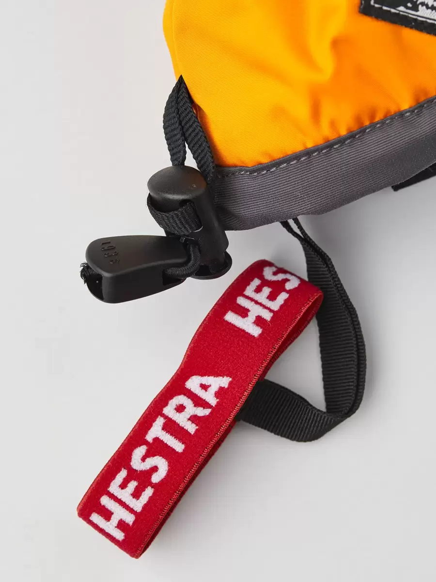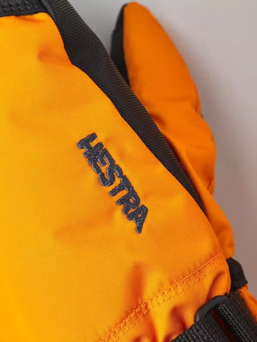 Varm och bekväm vante för aktiva barn. En av Hestras mest populära juniorversioner, perfekt för skidåkning, lek och utomhusaktiviteter i kallt vinterväder. Sydd i slitstark polyester med ett vattentätt, andningsbart CZone-membran och en längre mudd för att hålla snön ute. Fingertopparna och handflatan är förstärkta med PU-belagt syntetmaterial för extra styrka och bra grepp. Fodret är tillverkat av polyesterfleece med varm syntetisolering. Finns även i tre- och femfingersversioner.
