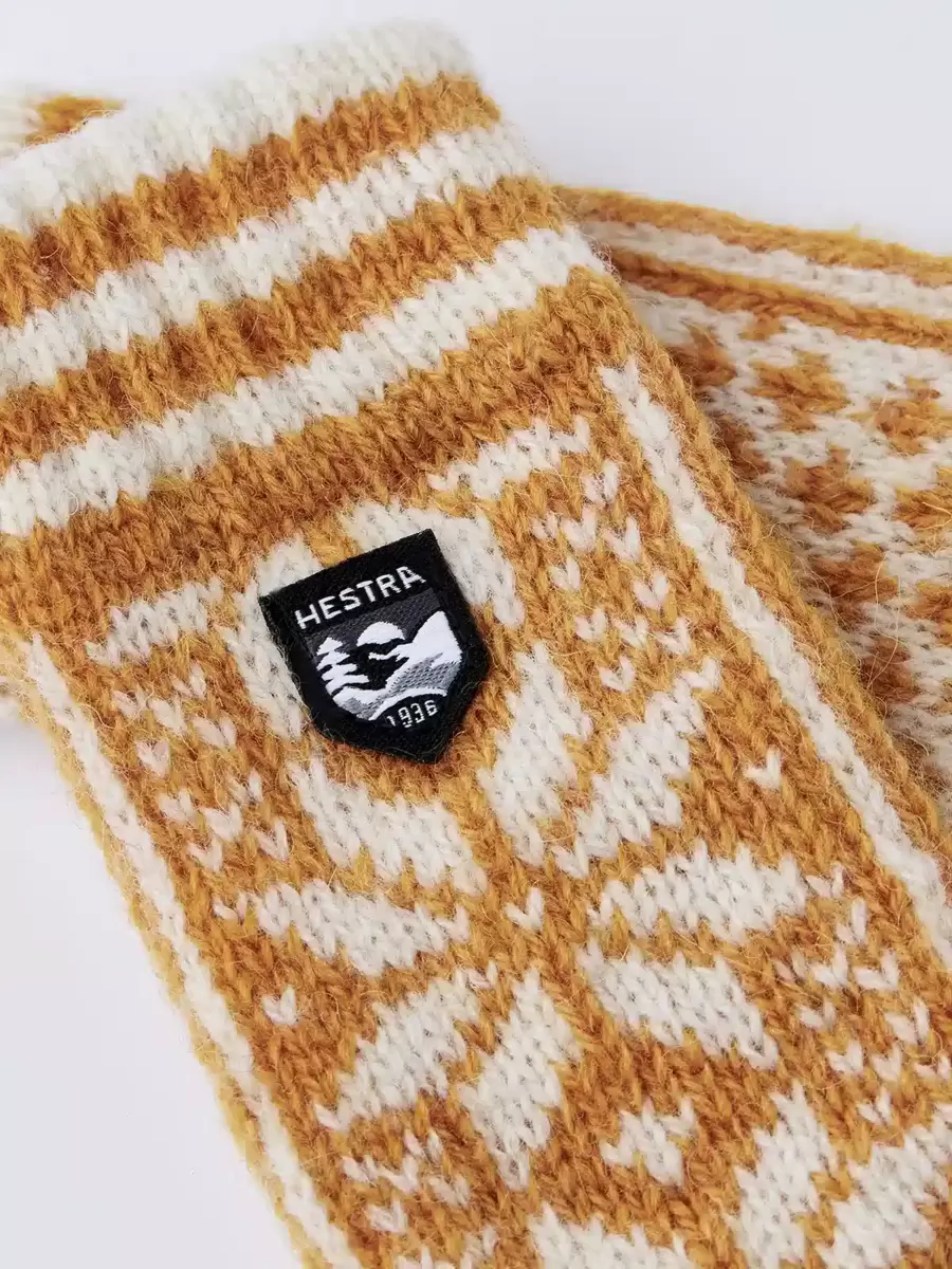 En mjuk och värmande vante för de allra minsta äventyrarna. Fair Isle stickad i en ullblandning i ett klassiskt nordiskt mönster med ribbad mudd. Perfekt för att hålla små händer varma under årets kallaste tider. Obs: storlek 0 har ingen tumme.