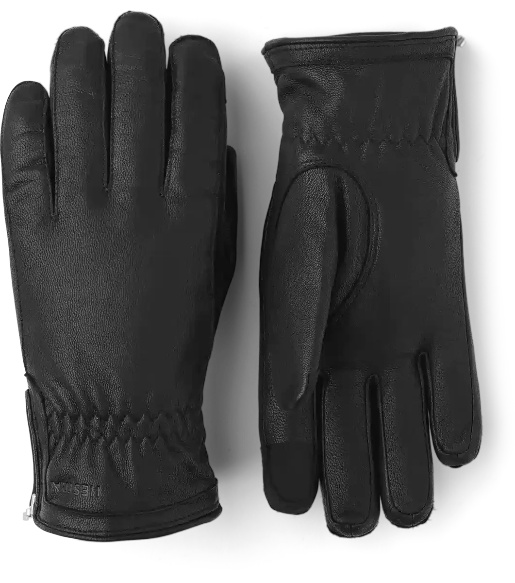 En bekväm, värmande damhandske i läder med pekskärmsvänligt tyg på pekfingret. En tidlös, värmande vardagshandske med mjukt fleecefoder och Primaloft Gold syntetisk isolering för kyliga dagar på hösten och vintern. Sydd i smidigt, behandlat, vattenavvisande och slitstarkt getskinn. Den korta dragkedjan på sidan av manschetten är en dekorativ detalj som också gör handsken lättare att ta på och av.