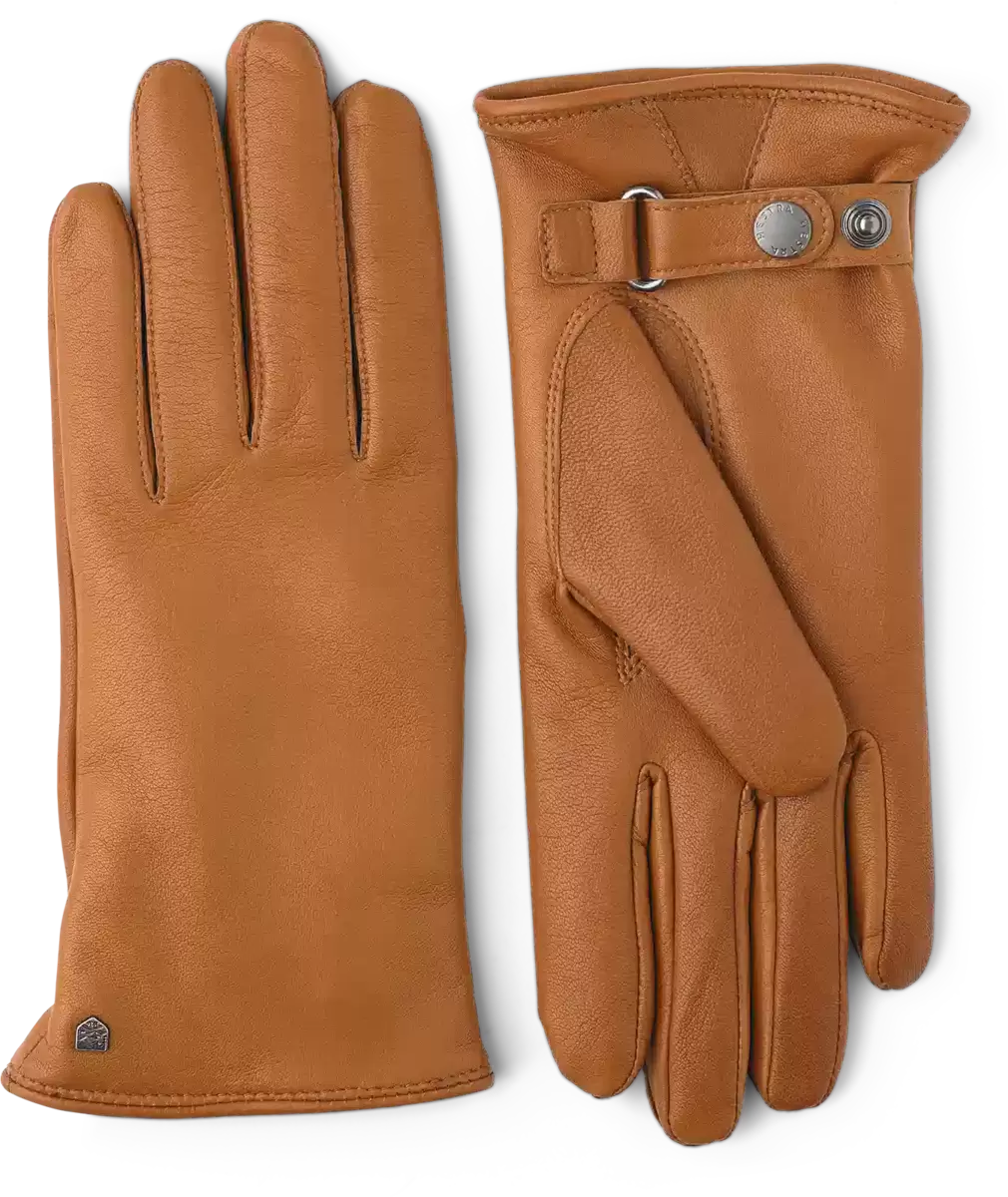 En klassisk handske i mjukt läder med ett värmande, stickat ullfoder. En tidlöst elegant design med dekorativ läderrem och tryckknapp vid handleden. Sydd i smidigt lammskinn, behandlat för att ge en vattenavvisande yta. Ullfodret är behagligt värmande även om det blir lite fuktigt. Perfekt för den dagliga pendlingen och för avkopplande helgpromenader på hösten och milda dagar på vintern.