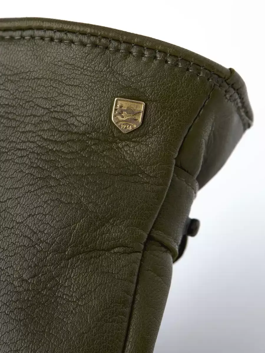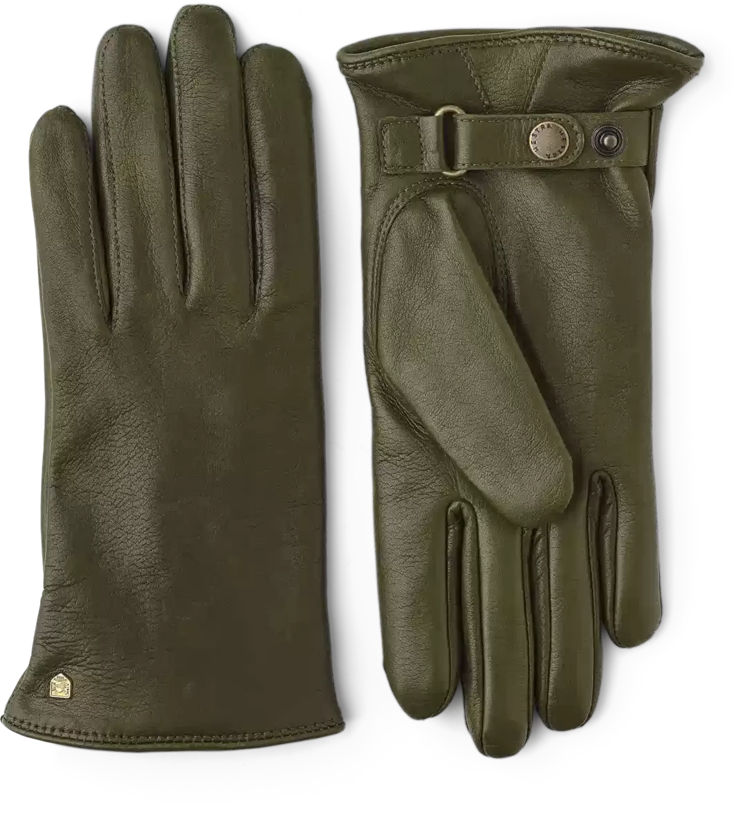En klassisk handske i mjukt läder med ett värmande, stickat ullfoder. En tidlöst elegant design med dekorativ läderrem och tryckknapp vid handleden. Sydd i smidigt lammskinn, behandlat för att ge en vattenavvisande yta. Ullfodret är behagligt värmande även om det blir lite fuktigt. Perfekt för den dagliga pendlingen och för avkopplande helgpromenader på hösten och milda dagar på vintern.