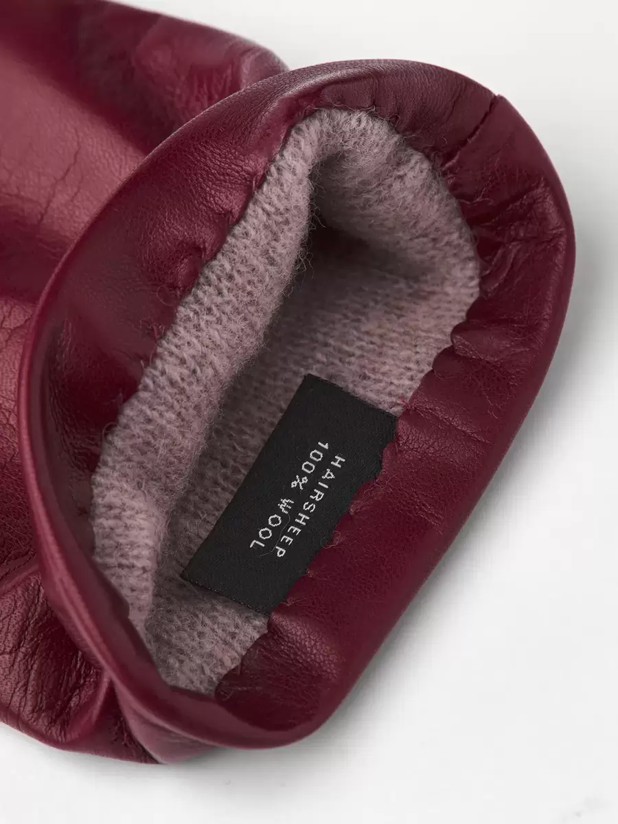 En elegant och tidlös läderhandske med mjukt, stickat ullfoder. Sydd i smidig italiensk lammnappa med handsydda dekorsömmar på baksidan. Passformen är feminin och nära handen med halvpikésömmar runt fingrarna. En tidlös och vacker modeaccessoar som är perfekt värmande på vår och höst samt milda vinterdagar.