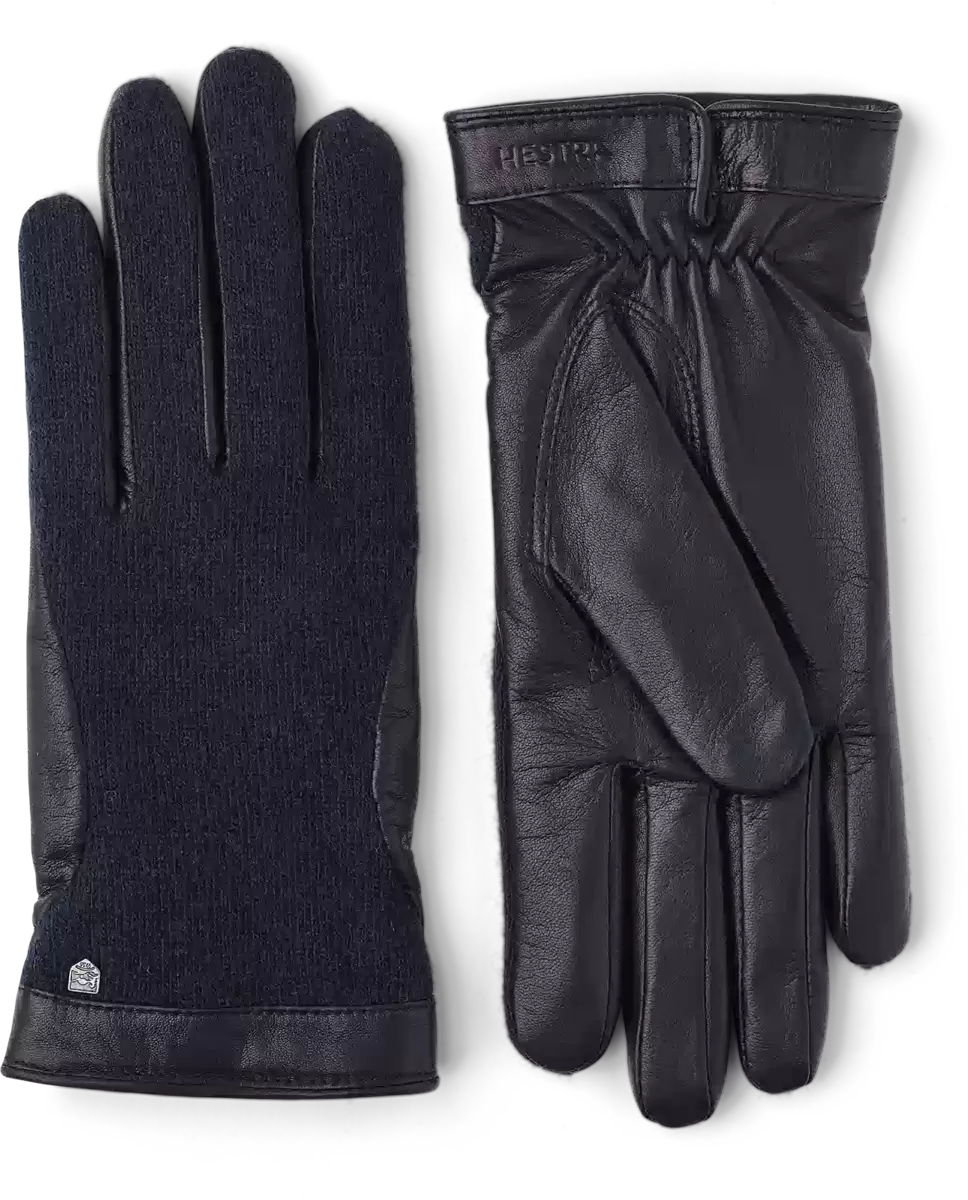 En åtsittande, elegant minimalistisk läderhandske med ulljersey på handryggen för kvinnor. En lätt vardagshandske med ett tunt, stickat ullfoder som håller händerna varma på hösten och mildare vinterdagar. Handflatan är sydd i mjukt, behandlat lammskinn, medan jerseytyget på handryggen ger en distinkt stilkänsla. Fantastiska material och skicklig sömnad kombineras för att skapa en tidlös handske som fungerar lika bra i staden som i en mer lantlig miljö.