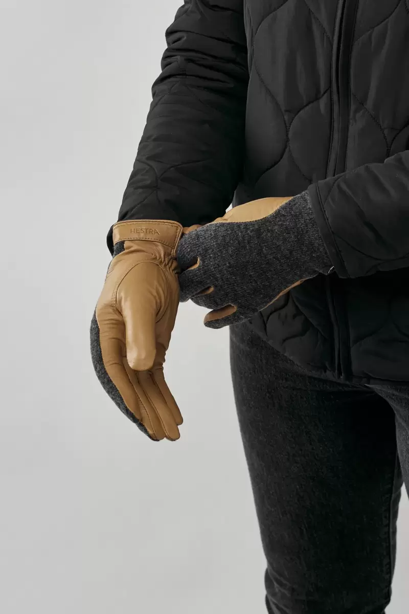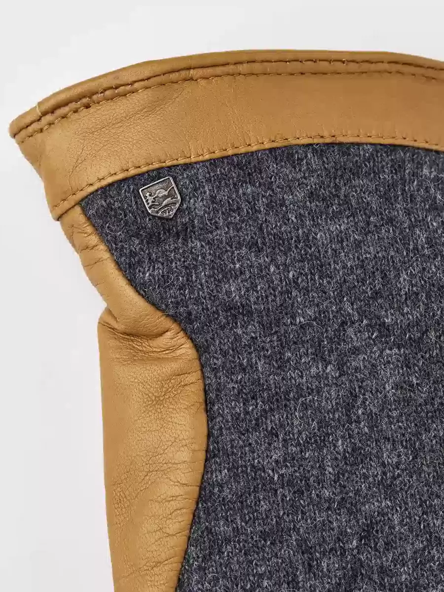 En åtsittande, elegant minimalistisk läderhandske med ulljersey på handryggen för kvinnor. En lätt vardagshandske med ett tunt, stickat ullfoder som håller händerna varma på hösten och mildare vinterdagar. Handflatan är sydd i mjukt, behandlat lammskinn, medan jerseytyget på handryggen ger en distinkt stilkänsla. Fantastiska material och skicklig sömnad kombineras för att skapa en tidlös handske som fungerar lika bra i staden som i en mer lantlig miljö.