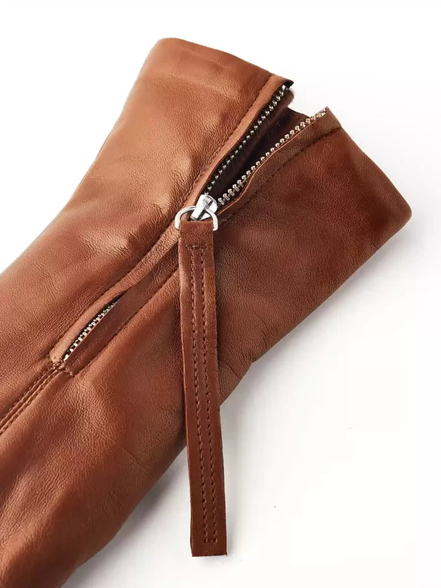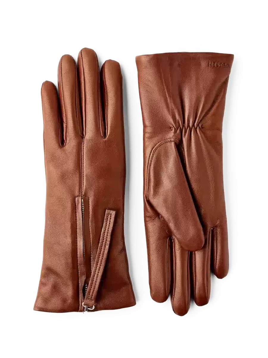 Fodrade läderhandskar för dam med dragkedja…