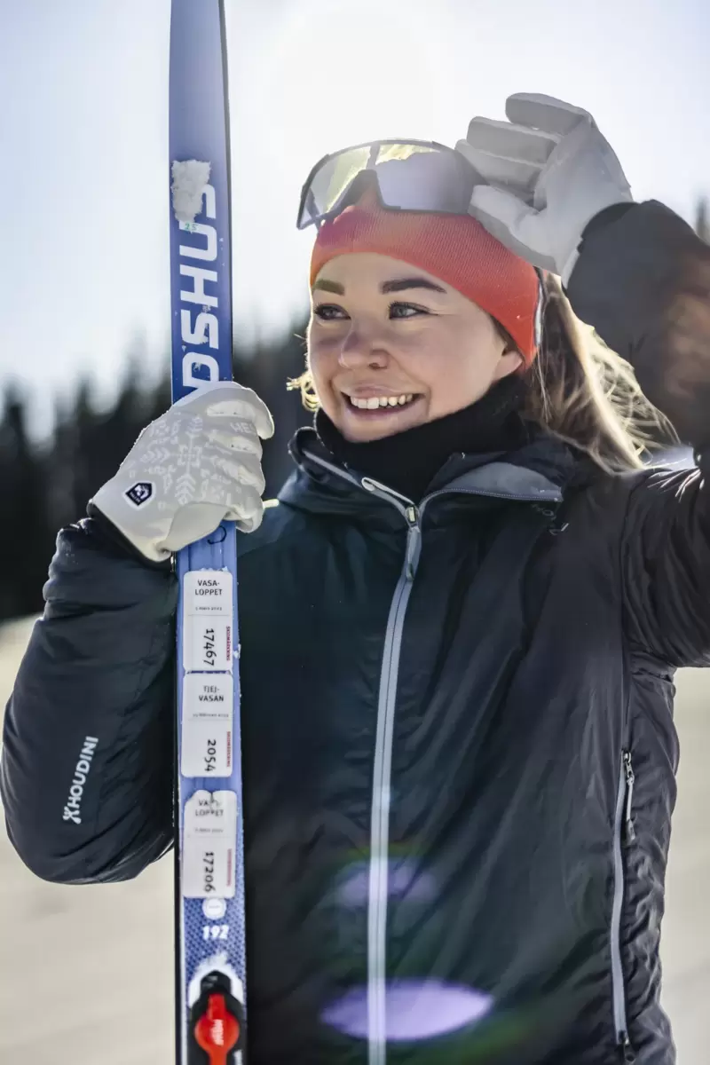 Varm längdskidåkningshandske med Primaloft Gold syntetisk isolering för extra värme på kalla dagar. Passformen är lite mer åtsittande för att passa kvinnors något smalare händer. Smidig baksida i vindtätt, andningsbart 3-lagerstyg och handflata i slitstark stretchpolyester. Fleece-näsduk på tummen och neoprenmanschett för en bekväm passform runt handleden. Perfekt för kyliga skidspår eller för löpning och andra vinteraktiviteter. Finns även som vante.