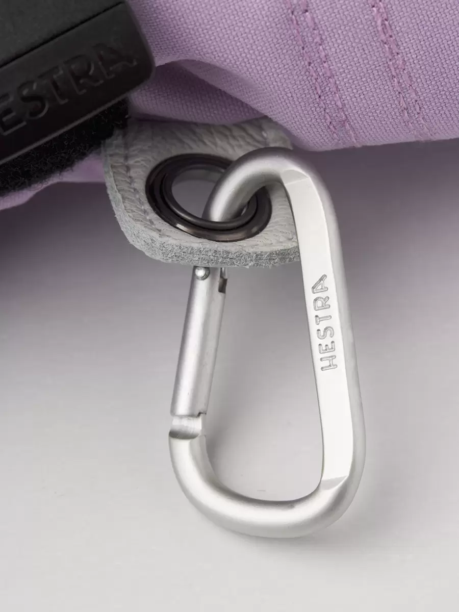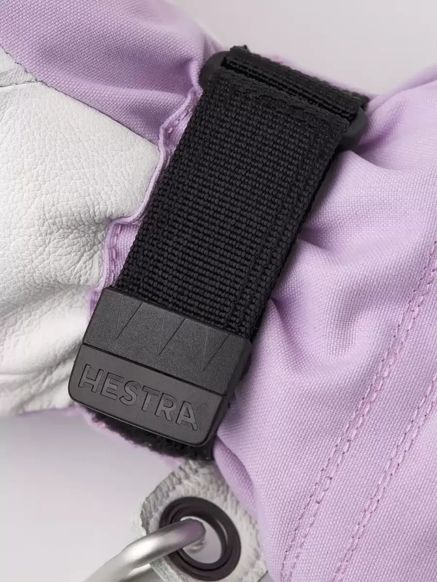 Hestras Army Leather Heli Ski skapades ursprungligen för skidguider i västra Kanada som behövde en pålitlig och varm skidhandske för långa, kalla dagar i snön. Denna damvante har en smalare skärning för att passa kvinnors smalare händer. Liksom alla vanteversioner ger den gott om plats för fingrarna, vilket gör den varmare än motsvarande handske. Ytterhandsken är sydd i en slitstark, väderbeständig kombination av getskinn och 3-lagers polyamidtyg. En rad smarta funktioner är praktiska när du inte kan gå inomhus för att värma dig så ofta. Till exempel är fodret enkelt att ta bort och torka, eller byta ut mot en tunnare innerhandske när du är mer aktiv och vandrar i uppförsbackar. I pudersnö håller den långa mudden med snölås och handledsjustering snön på utsidan och värmen på insidan. En handledsrem minskar risken för att tappa handsken om du tar av den för att justera din utrustning eller använda din telefon. Och den medföljande karbinhaken gör att du kan hänga upp handsken med öppningen nedåt – praktiskt när du bara har ett tunnare foder på dig och vill undvika att dina handskar fylls med snö. En slitstark och flexibel följeslagare för skidåkare som tillbringar mycket tid utomhus och som ofta befinner sig långt från skidorten och dess bekvämligheter. Finns även i 3-finger- och 5-fingermodeller.