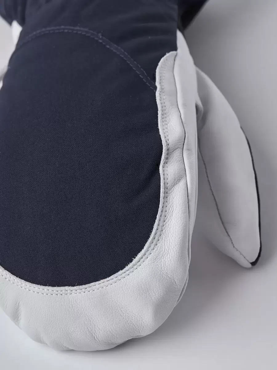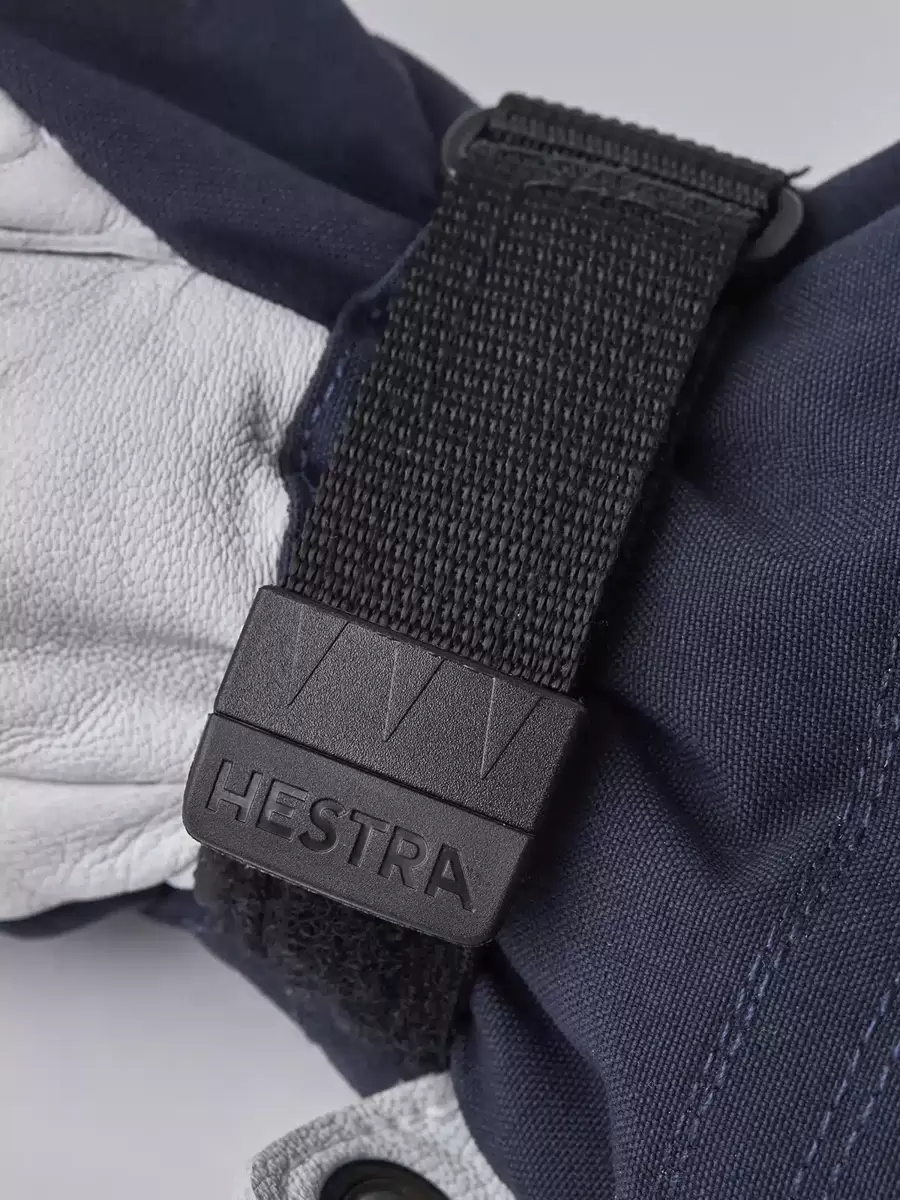 Hestras Army Leather Heli Ski skapades ursprungligen för skidguider i västra Kanada som behövde en pålitlig och varm skidhandske för långa, kalla dagar i snön. Denna damvante har en smalare skärning för att passa kvinnors smalare händer. Liksom alla vanteversioner ger den gott om plats för fingrarna, vilket gör den varmare än motsvarande handske. Ytterhandsken är sydd i en slitstark, väderbeständig kombination av getskinn och 3-lagers polyamidtyg. En rad smarta funktioner är praktiska när du inte kan gå inomhus för att värma dig så ofta. Till exempel är fodret enkelt att ta bort och torka, eller byta ut mot en tunnare innerhandske när du är mer aktiv och vandrar i uppförsbackar. I pudersnö håller den långa mudden med snölås och handledsjustering snön på utsidan och värmen på insidan. En handledsrem minskar risken för att tappa handsken om du tar av den för att justera din utrustning eller använda din telefon. Och den medföljande karbinhaken gör att du kan hänga upp handsken med öppningen nedåt – praktiskt när du bara har ett tunnare foder på dig och vill undvika att dina handskar fylls med snö. En slitstark och flexibel följeslagare för skidåkare som tillbringar mycket tid utomhus och som ofta befinner sig långt från skidorten och dess bekvämligheter. Finns även i 3-finger- och 5-fingermodeller.