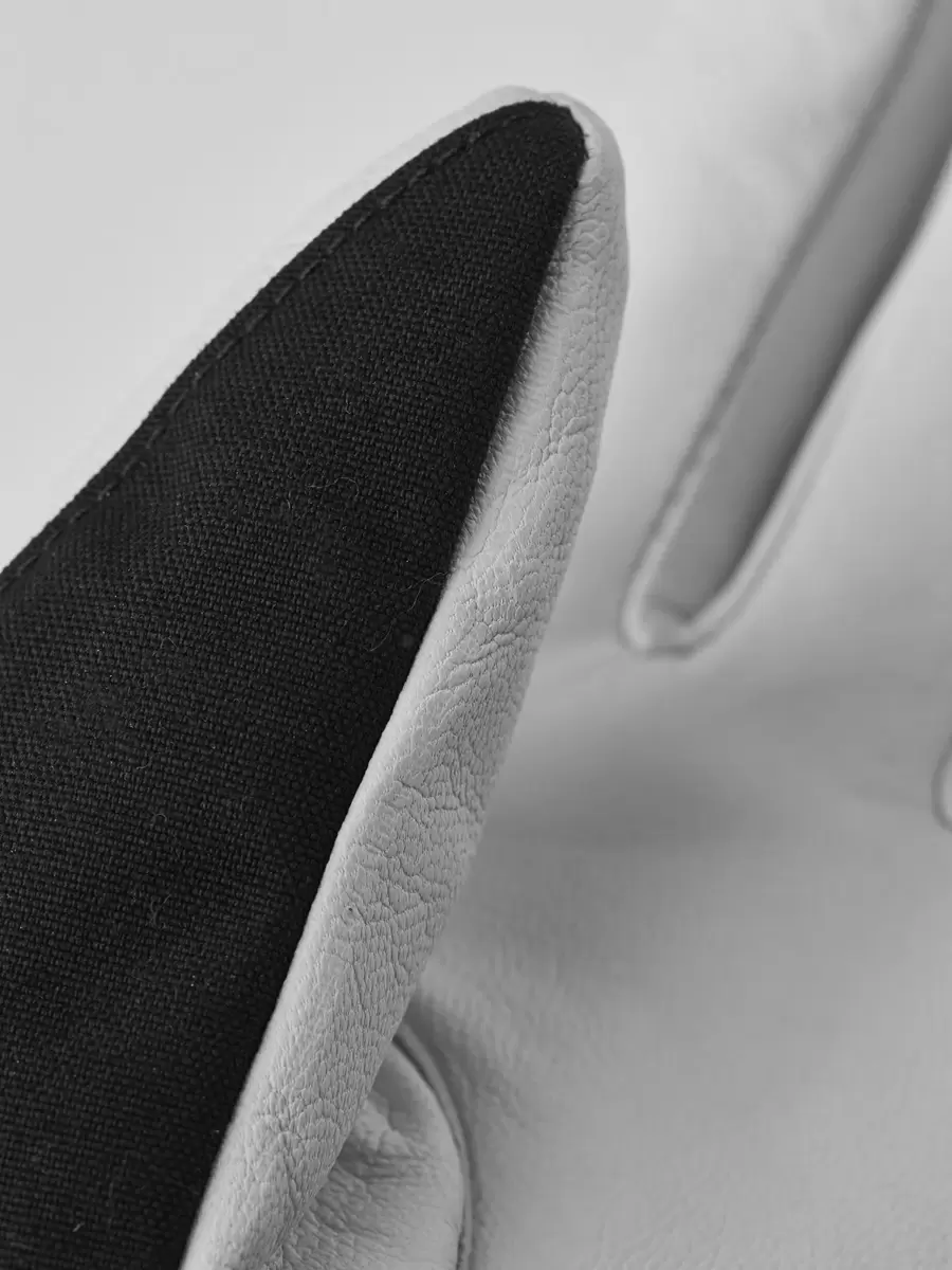Hestras Army Leather Heli Ski skapades ursprungligen för skidguider i västra Kanada som behövde en pålitlig och varm skidhandske för långa dagar i snö och kyla. Tillverkad av slitstarkt getläder som ger exceptionellt grepp och känsla, och en vattenavvisande 3-lagers polyamidväv på handsken. Denna 5-fingers skidhandske har en rad smarta funktioner som är praktiska när du inte kan gå in och värma upp dig så ofta. Fodret kan till exempel enkelt bytas ut om det blir fuktigt eller för att anpassa sig till varierande aktivitetsnivåer och temperaturer. Och den långa kragen har ett snölås som, tillsammans med ett kardborreband på handleden, säkerställer att värmen stannar kvar inuti handsken. Ett handledsband minskar risken att tappa handsken om du tar av dig den för att svara i telefon eller justera din utrustning. En medföljande karbinhake och en ögla på lillfingret gör det möjligt att hänga handsken med öppningen nedåt på dina skidbyxor eller klättersele – praktiskt för att undvika att den fylls med snö medan du arbetar med bara ett tunnare foder på händerna. En slitstark och flexibel följeslagare för skidåkare som tillbringar mycket tid utomhus och som ofta befinner sig långt från skidorten och dess bekvämligheter. Finns även som vante och 3-fingermodell.