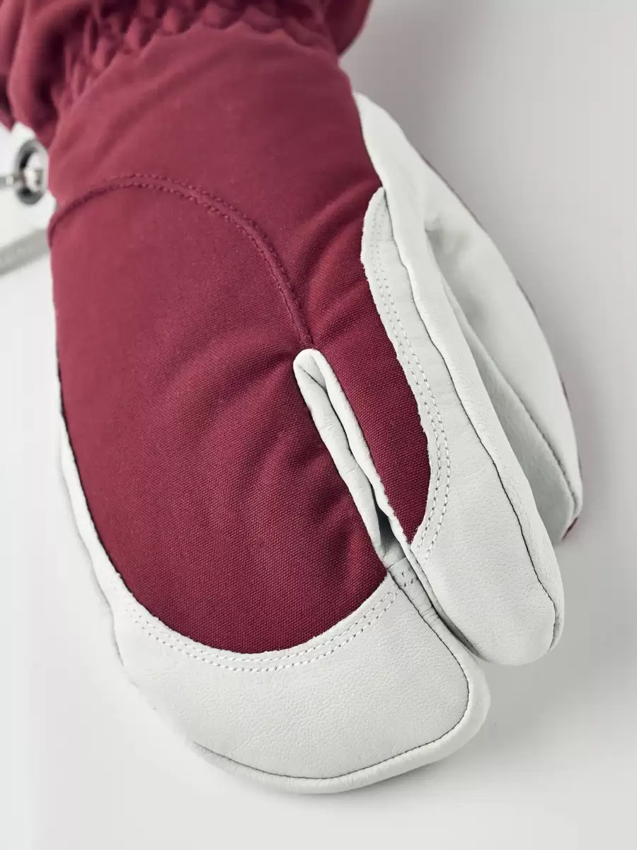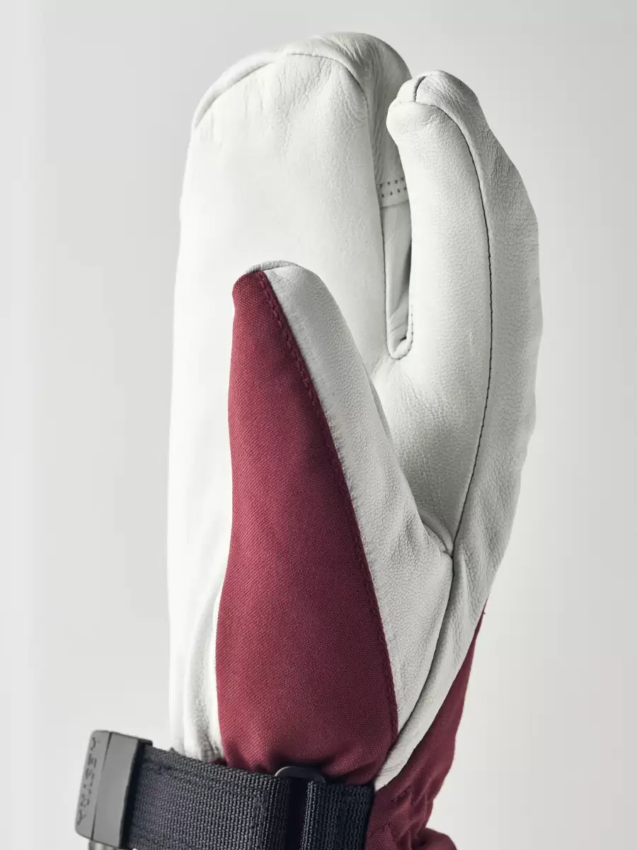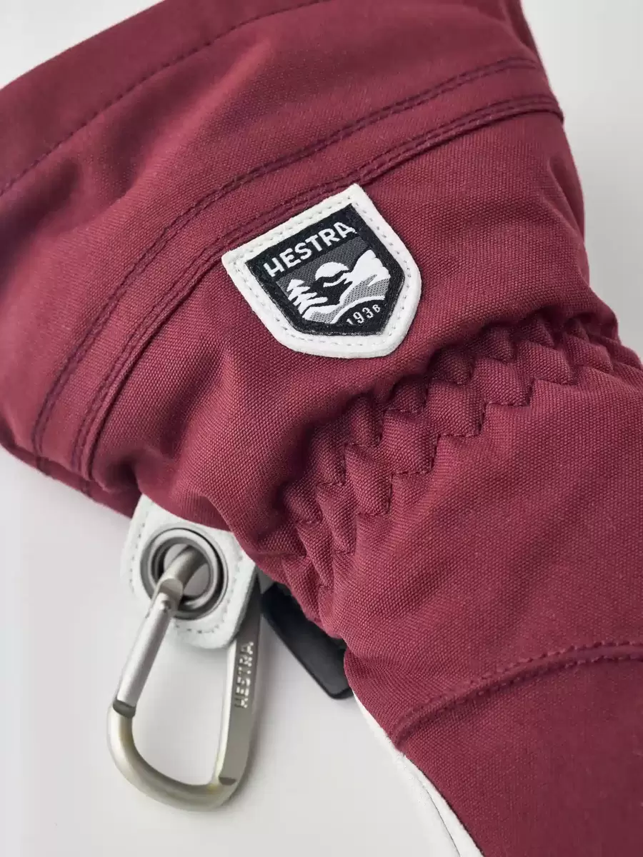 Hestras Army Leather Heli Ski skapades ursprungligen för skidguider i västra Kanada som behövde en pålitlig och varm skidhandske för långa, kalla dagar i snön. Denna 3-fingershandske för dam har en smalare skärning för att passa kvinnors smalare händer men är sydd i samma slitstarka, väderbeständiga kombination av getskinn och 3-lagers polyamidtyg som herrversionen. Liksom alla 3-fingersversioner erbjuder den något mer värme samtidigt som den bibehåller en viss fingerfärdighet. En rad smarta funktioner är praktiska när du inte kan gå inomhus för att värma dig så ofta. Till exempel är fodret lätt att ta bort och torka, eller byta ut mot en tunnare innerhandske när du är mer aktiv och vandrar i uppförsbackar. I pudersnö håller den långa mudden med snölås och handledsjustering snön på utsidan och värmen på insidan. En handledsrem minskar risken för att tappa handsken om du tar av den för att justera din utrustning eller använda din telefon. Och den medföljande karbinhaken gör att du kan hänga upp handsken med öppningen nedåt – praktiskt för att undvika att handskarna fylls med snö när du bara har ett tunnare foder på dig. En slitstark och flexibel följeslagare för skidåkare som tillbringar mycket tid utomhus och som ofta befinner sig långt från skidorten och dess bekvämligheter. Finns även som vante- och 5-fingermodell, samt i en herrversion.