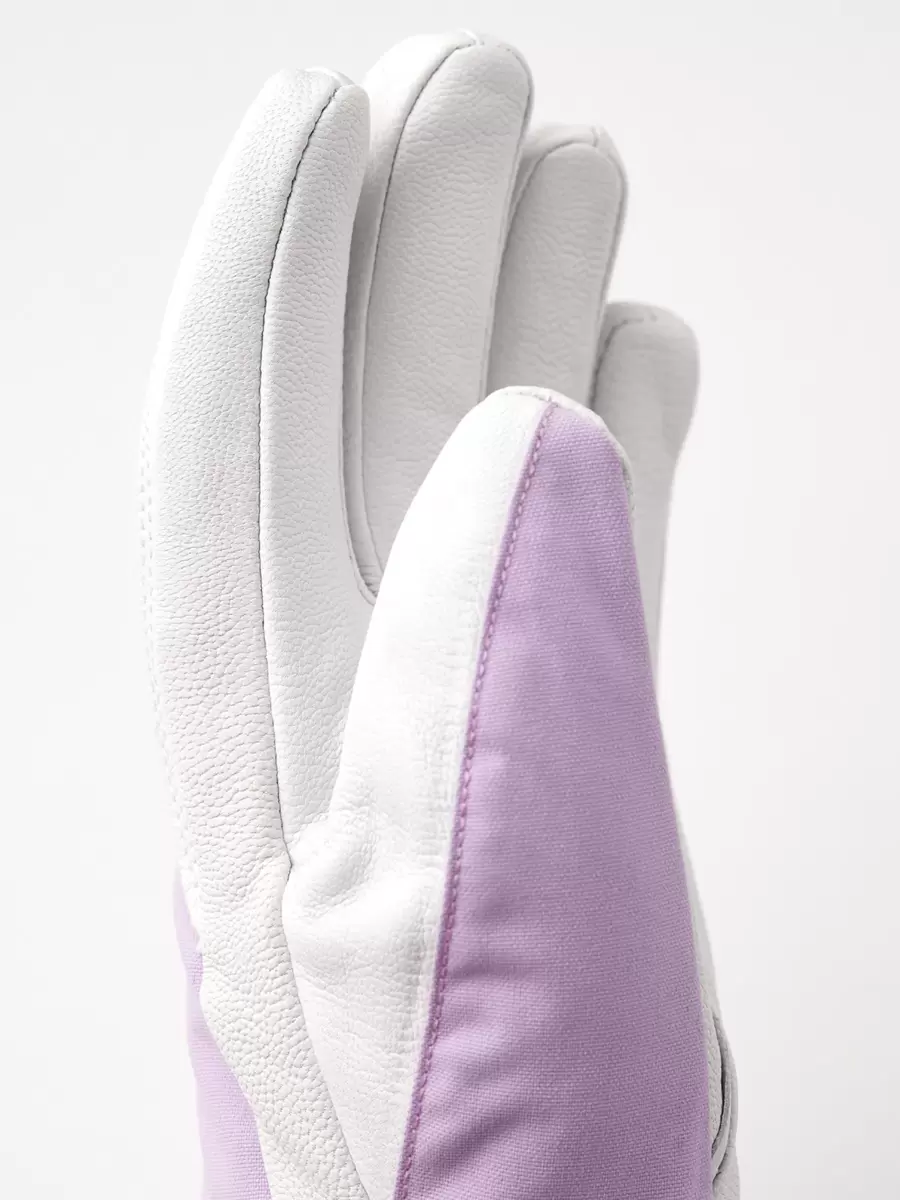 Hestras Army Leather Heli Ski skapades ursprungligen för skidguider i västra Kanada som behövde en pålitlig och varm skidhandske för långa, kalla dagar i snön. Denna 5-fingers damhandske har en smalare passform för att passa kvinnors smalare händer men är sydd i samma slitstarka, väderbeständiga kombination av getskinn och 3-lagers polyamidtyg som herrversionen. En rad smarta funktioner är praktiska när du inte kan gå inomhus för att värma dig så ofta. Till exempel är fodret enkelt att ta bort och torka, eller byta ut mot en tunnare innerhandske när du vandrar i uppförsbacke. I pudersnö håller den långa mudden med snölås och handledsjustering snön på utsidan. En handledsrem minskar risken för att tappa handsken om du tar av den för att justera din utrustning eller använda din telefon. Och den medföljande karbinhaken gör att du kan hänga upp handsken med öppningen nedåt – praktiskt för att undvika att den fylls med snö när du bara har ett tunnare foder på dig. En slitstark och flexibel följeslagare för skidåkare som tillbringar mycket tid utomhus och ofta befinner sig långt från skidorten och dess bekvämligheter. Finns även som vante- och 3-fingermodell, samt i herrversion.