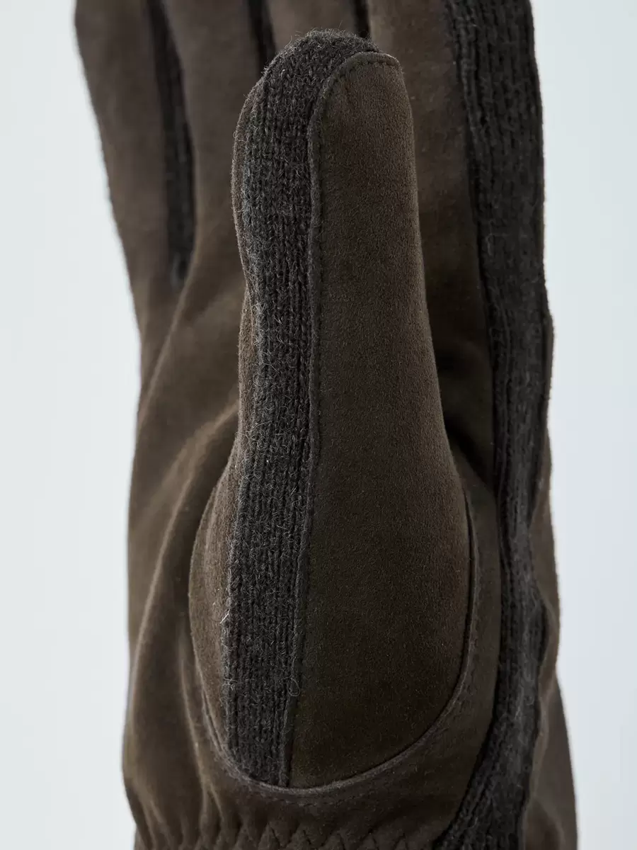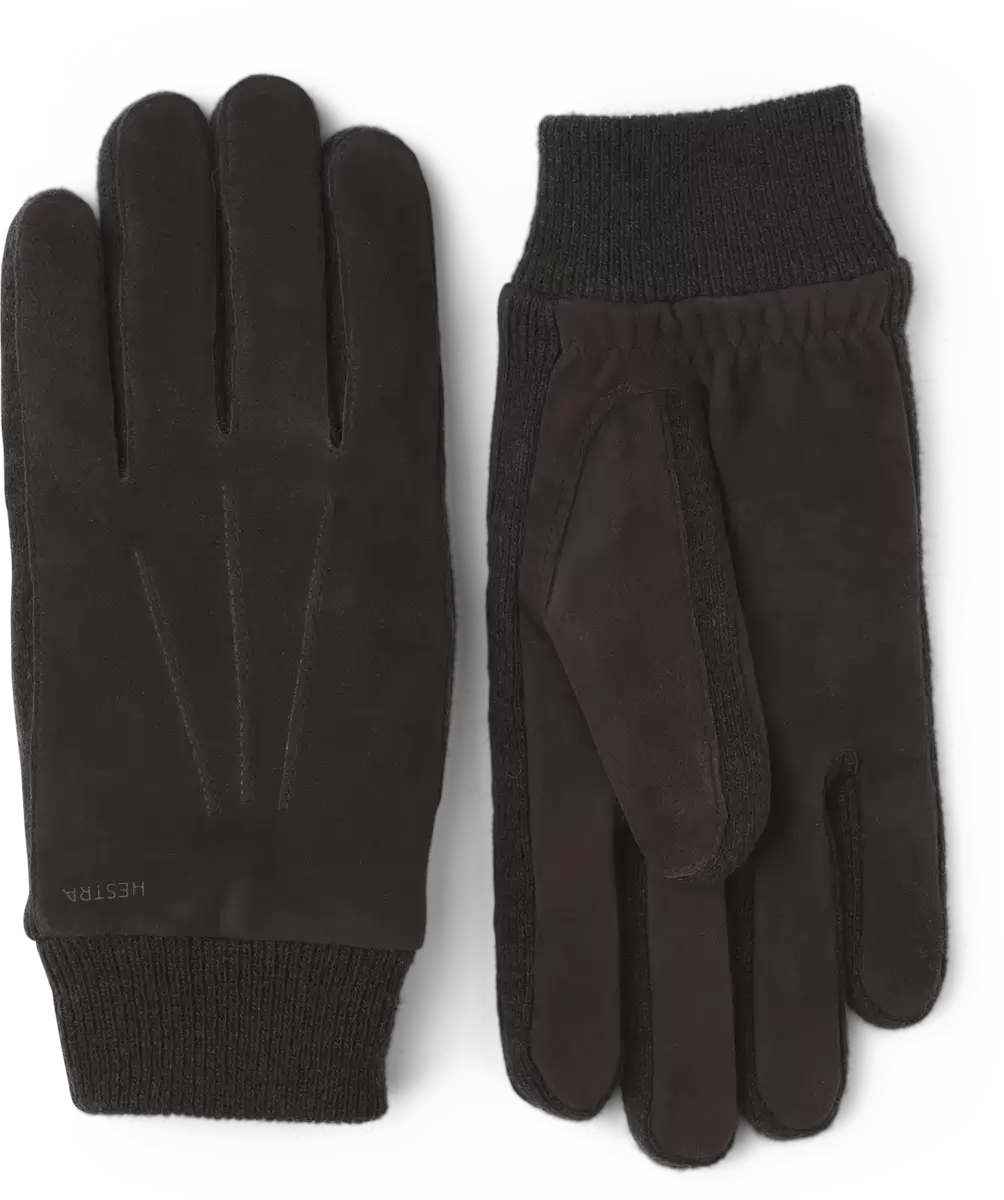 En sportig och bekväm handske som kombinerar ull och den mjukaste lammmockan. Geoffrey-handsken är en snygg och värmande herrhandske för höst och mildare vinterdagar. En sidokil och detaljer är i ribbstickad ulljersey, medan baksidan och handflatan är i italiensk lammmocka. Halvpiquésömmar runt fingrarna ger en bra passform och en ribbad mudd omsluter handleden.