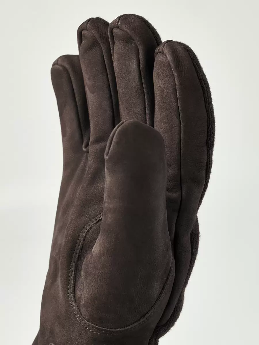 En tidlös läderhandske i robust nubuckläder, med en baksida i ulljersey. En attraktiv, värmande vardagshandske för män, med en avslappnad stil som fungerar lika bra för att pendla till kontoret eller utforska naturen. Ett mjukt fleecefoder med Primaloft Gold syntetisk isolering håller händerna varma i kyligt vinterväder. Handleden är relativt kort, med en elastisk baksida och en ribbad mudd som omsluter handleden försiktigt.