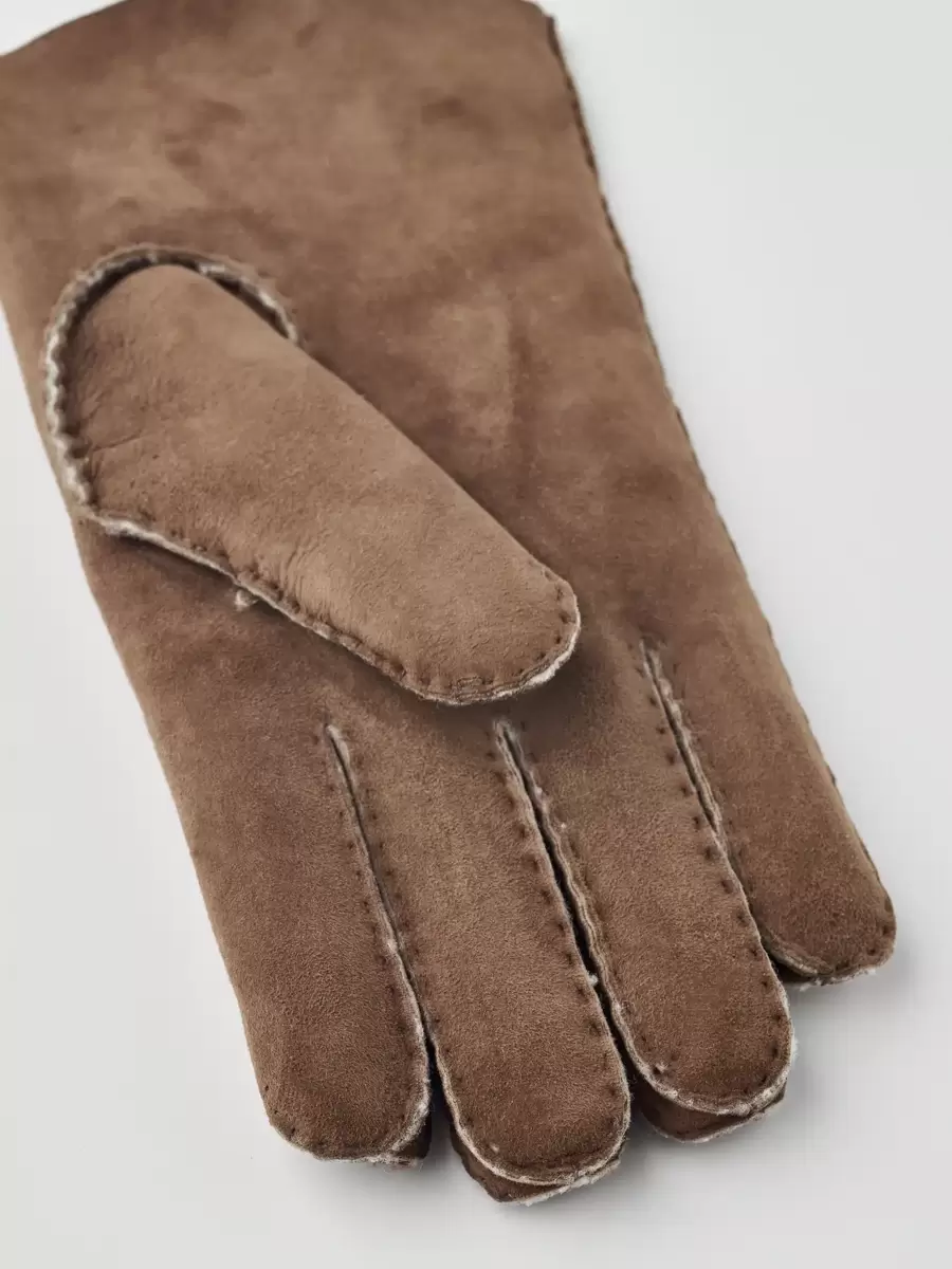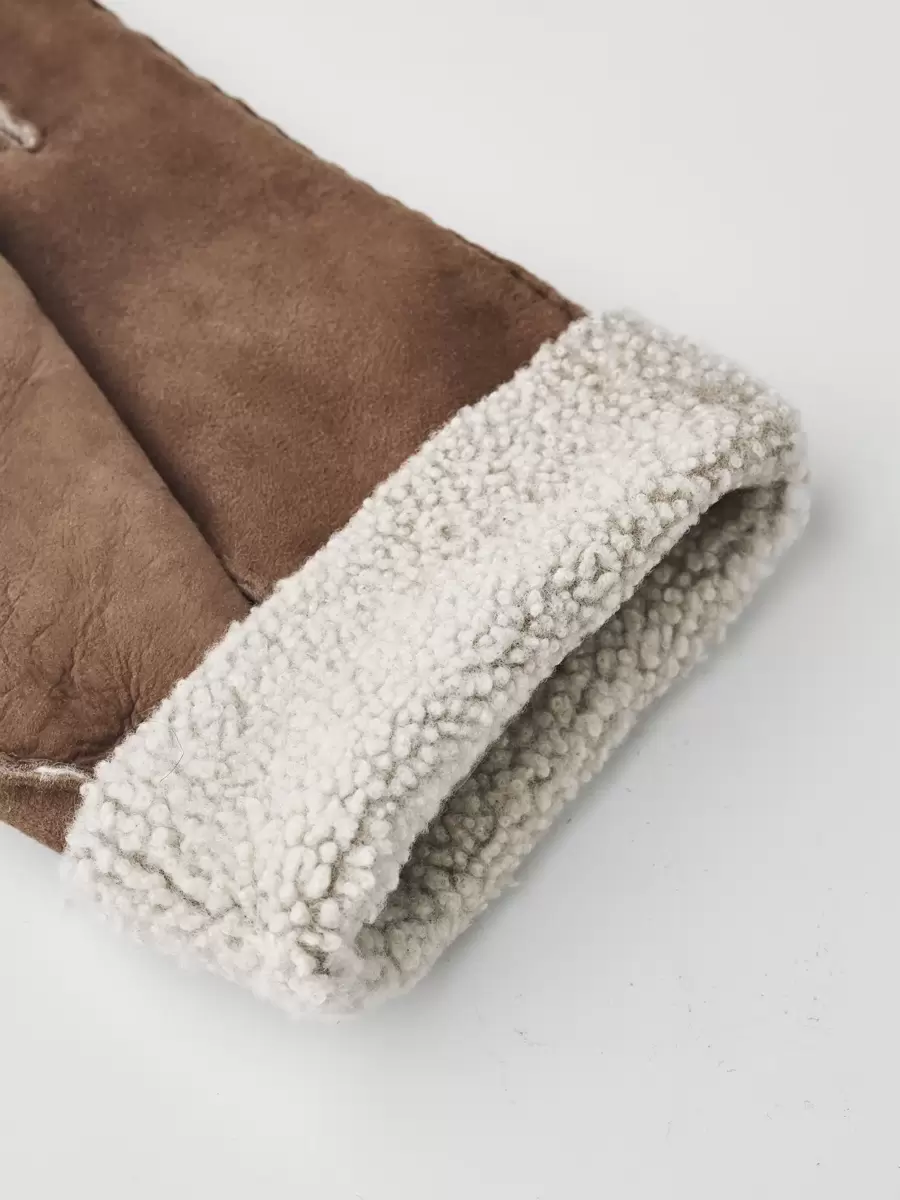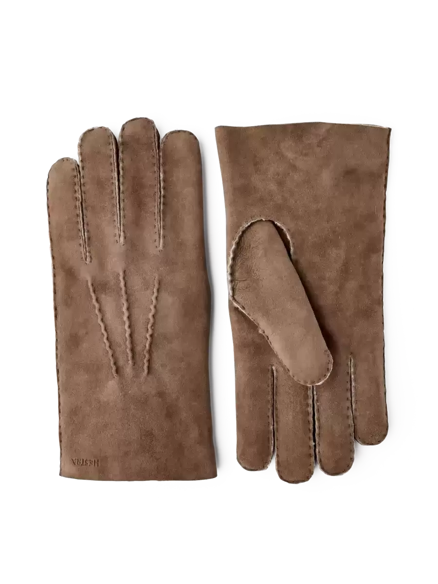 En mjuk, lätt handske i lammmocka för behaglig värme under de kallaste vinterdagarna. En tidlös design för män, handsydd med mockasidan vänd utåt, medan det fluffiga lammskinnet omsluter handen i värme. En vacker, värmande handske som fungerar lika bra för vinterpromenader på landet som dagar i staden.