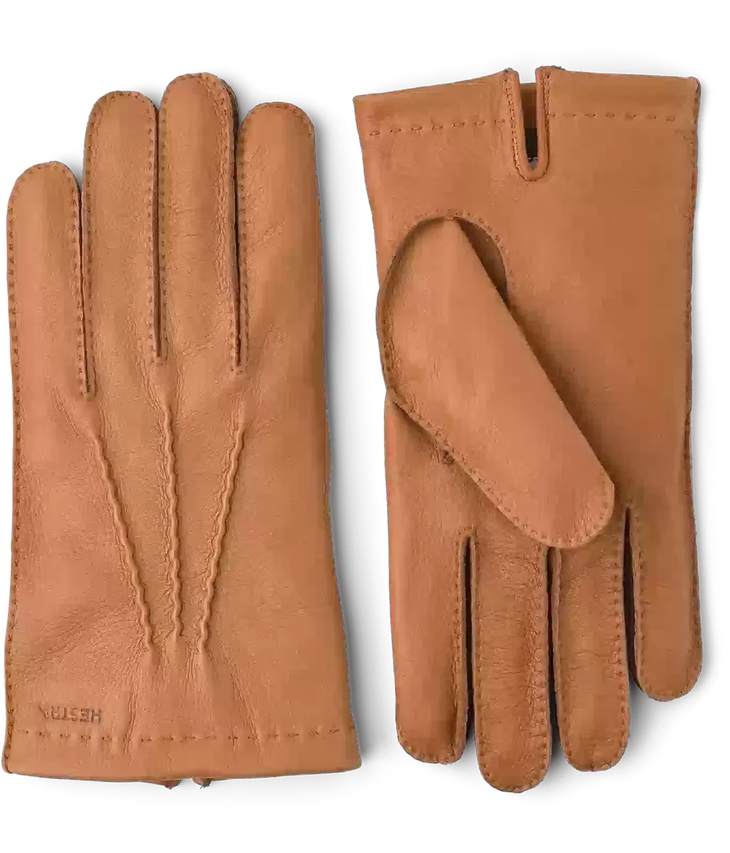 Vackert hantverk och enastående läder är de viktigaste egenskaperna hos denna klassiska herrhandske. Handsydd i det mjukaste hjortskinnet, ett smidigt läder med en naturlig, rustik känsla. Passformen sitter nära handen med dekorativa sömmar på baksidan av handleden och en liten slits på insidan av handleden. Ett tidlöst basplagg i en väl genomtänkt garderob, lätt att kombinera med en mer avslappnad eller en mer formell outfit. Denna design är ofodrad för vår- och tidig höstbruk.