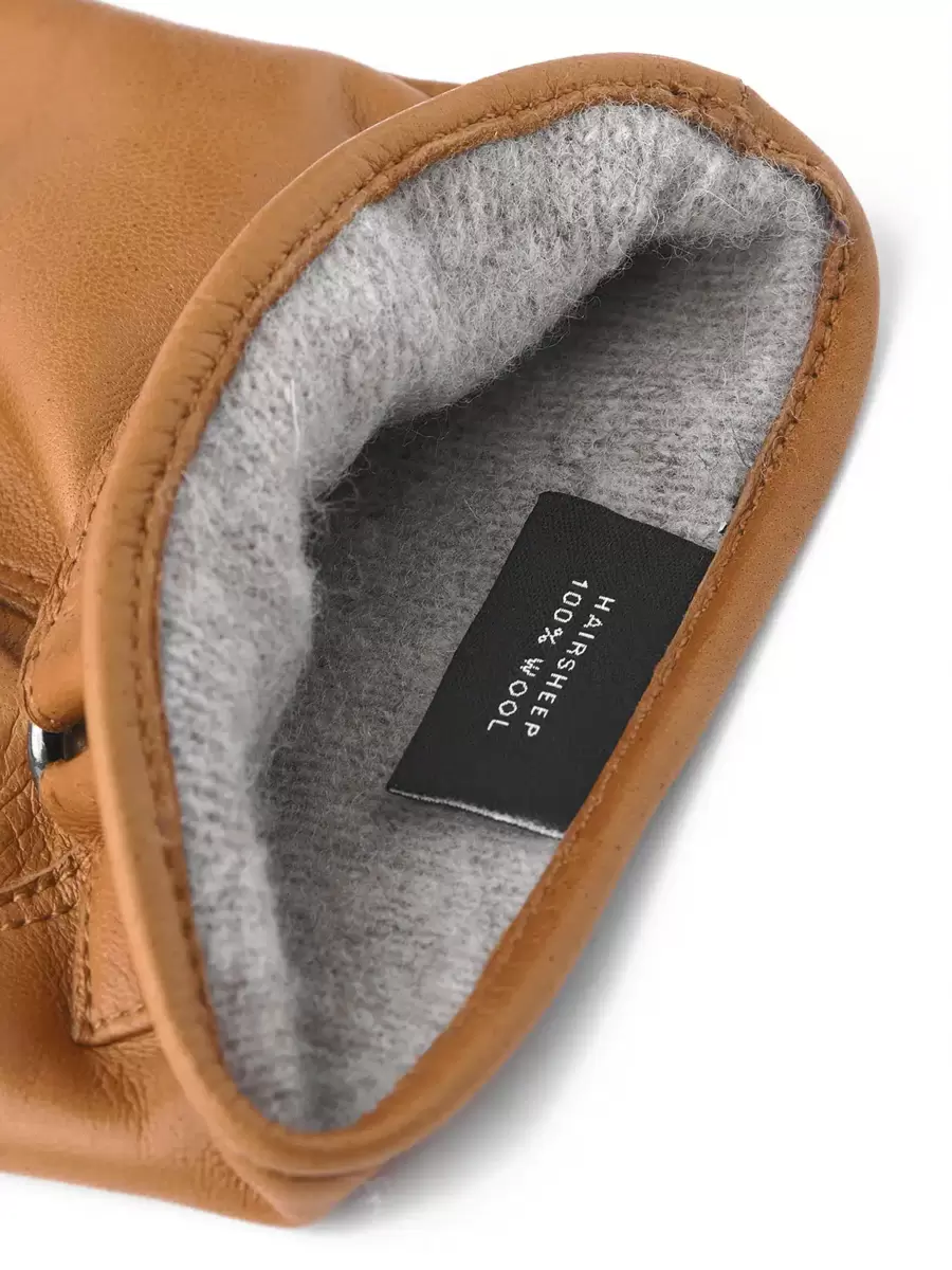 Kashmir möter lammnappa i denna eleganta modehandske, värmande med en mjuk, lyxig känsla. Baksidan är stickad i den mjukaste kashmirullen medan handflatan är i exklusiv italiensk lammnappa. Den har också ett mjukt, stickat foder i matchande färg, också i kashmir. Färg 100 har en touchfunktion som låter dig svara i din smartphone utan att ta av dig handsken.