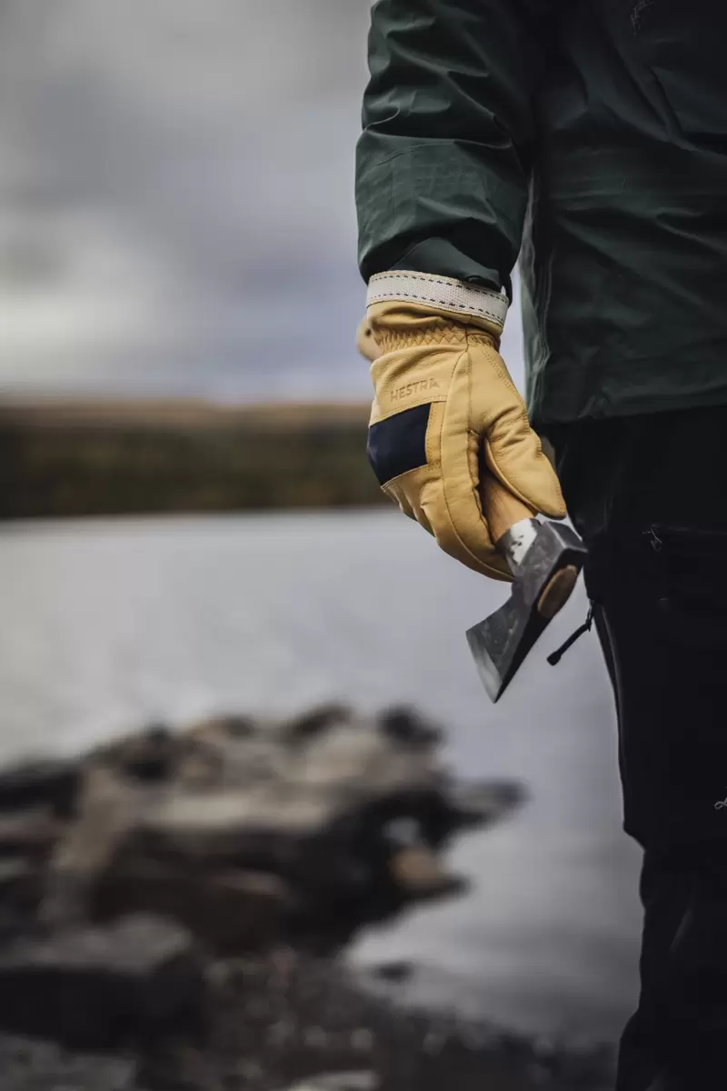Med sin tidlösa stil är Njord en robust 5-fingers läderhandske i slitstarka, naturliga material. Den har ett avtagbart, maskintvättbart, stickat foder och ytterhandsken fungerar på egen hand – eller i kombination med andra Hestra-foder – och erbjuder mångsidighet vad gäller funktioner i en enda handske. Slitstarkt getskinn ger skydd mot vind och väder, medan det vaxade bomulls-/polyestertyget på handryggen också är vind- och vattenavvisande. Den har en lång krage med dekorativ bomullskant. En praktisk, bekväm och attraktiv handske som kommer att vara vid din sida i det fria året runt under lång tid framöver och få en vacker patina med användning.