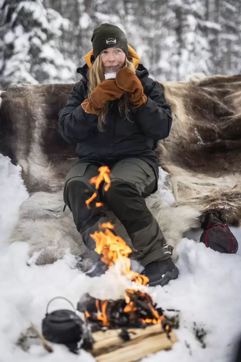 Oden Vante är en värmande vanteversion av en klassisk friluftshandske, sydd i slitstarkt nubuckläder. Den har ett separat stickat ull-/polyamidfoder som värmer och transporterar bort fukt, vilket enkelt kan tas ut för torkning eller tvätt. Du kan också byta ut mot något av Hestras andra avtagbara foder. Utvändiga sömmar ger komfort och en distinkt stilkänsla, sydda i flamskyddstråd som inte smälter runt en lägereld. En dragflik på manschetten gör handsken lättare att ta på och en öljett gör att du kan fästa den i en bälteshälla eller ryggsäck. En bekväm och attraktiv följeslagare på höst- och vinterpicknick- eller grillturer med en tidlös stil som även fungerar för vardagsbruk.