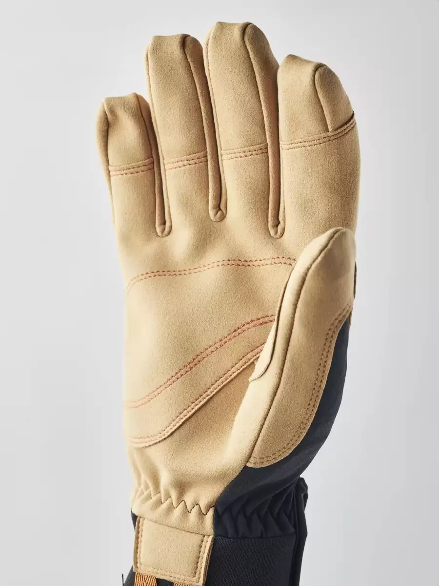 Baksidan är tillverkad av flexibelt, väderbeständigt polyamidtyg som transporterar bort fukt. Perforerade ventilationshål runt fingrarna. Neoprenmanschetten justeras med kardborreband och en stor ögla gör att du kan fästa handsken i klätterselen, till exempel. Finns även i en halvfingerversion.
