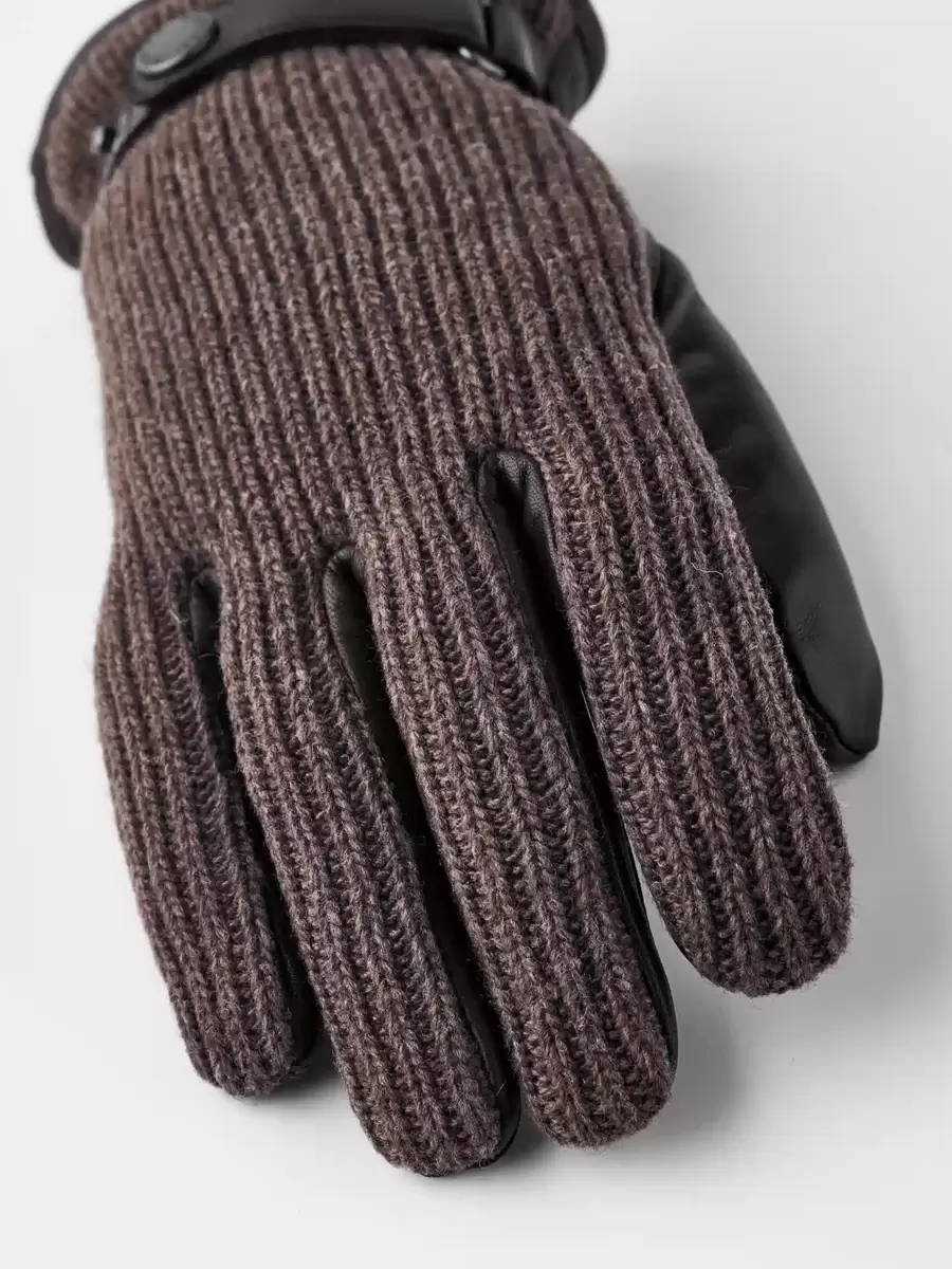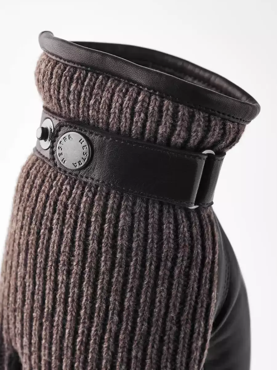 Sportligt avslappnat eller vardaglig elegans – Christopher-handsken kombinerar de två i en värmande modeaccessoar för män. Modellen har en mjuk italiensk lammnappa-handflata och en baksida i ribbad ull. Lädret syns också på en handledsrem som kontrasterar behagligt mot det stickade materialet.