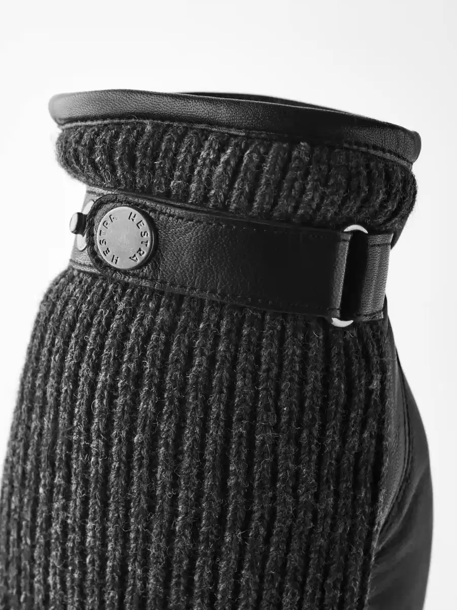 Sportligt avslappnat eller vardaglig elegans – Christopher-handsken kombinerar de två i en värmande modeaccessoar för män. Modellen har en mjuk italiensk lammnappa-handflata och en baksida i ribbad ull. Lädret syns också på en handledsrem som kontrasterar behagligt mot det stickade materialet.
