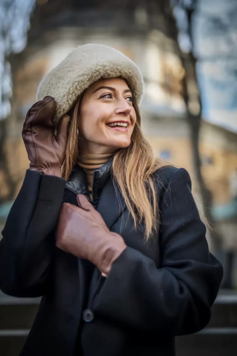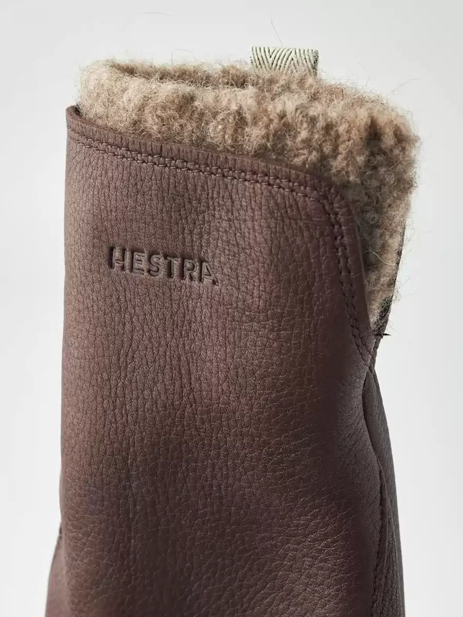 Tidlös hjortskinnsvante med avtagbart ullfoder. En attraktiv, värmande damhandske med fint bearbetade detaljer och en naturlig, rustik känsla. Det isolerande hjortskinnet är också mjukt och smidigt. Foderhandsken är stickad i mjukt, värmande garn som innehåller jak- och alpackaull. Perfekt för kyliga höst- och vinterdagar, och lika lämplig för en elegantare stil som som en del av en mer avslappnad outfit.