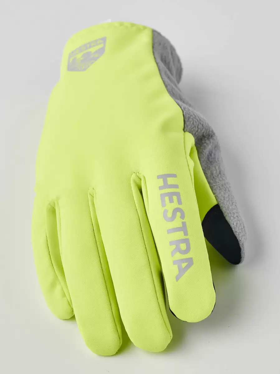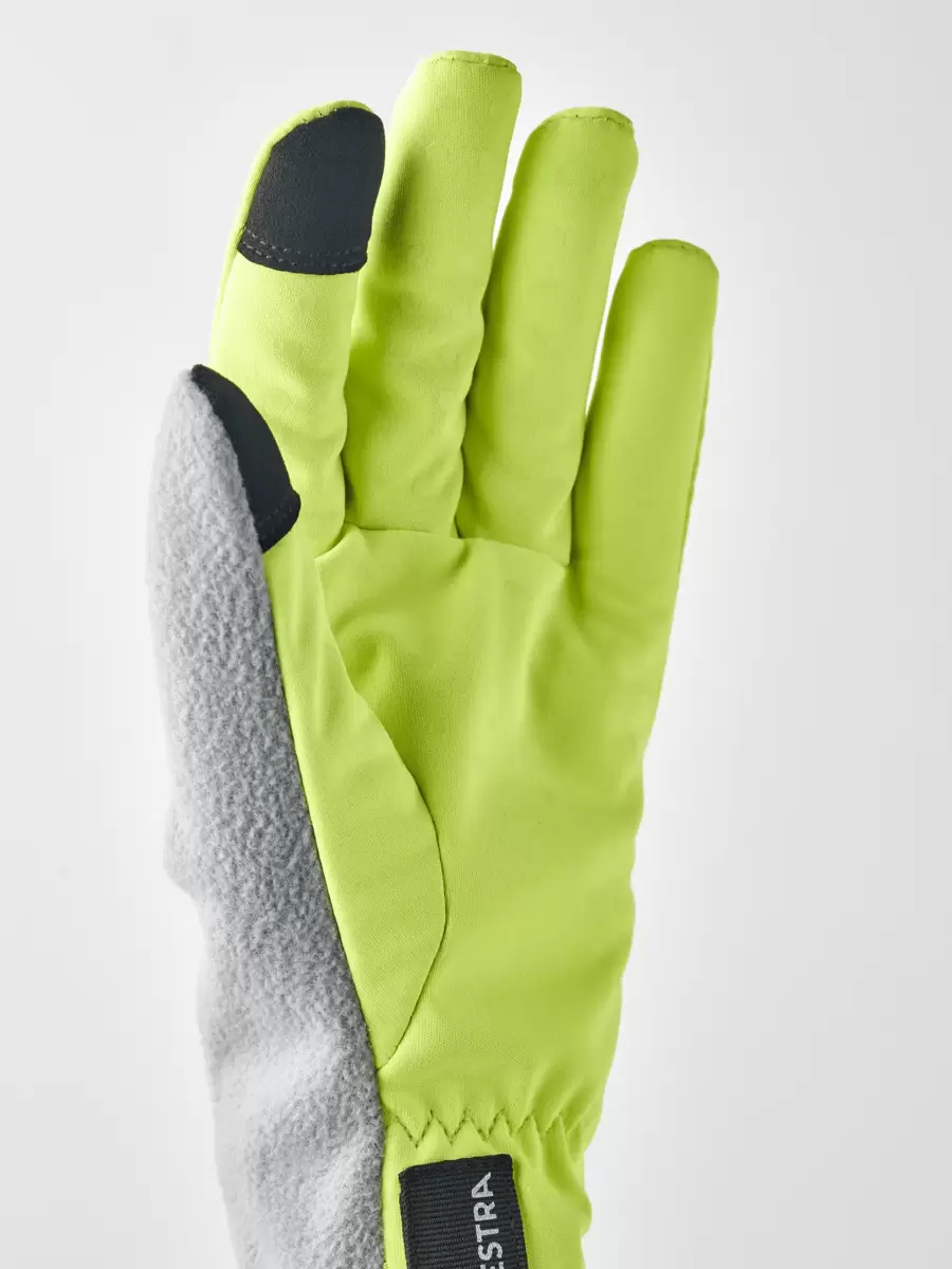 Handsken har greppvänligt tryck på handflatan och reflekterande tryck i logotypen på baksidan. Pekskärmsvänligt material på tummen och pekfingret låter dig använda en telefon utan att ta av dig handskarna. Stretchtyget på tummen har vänts utåt med fleecesidan för att fungera som en näsduk när du börjar svettas. Perfekt för terränglöpning när det är lite kyligt.