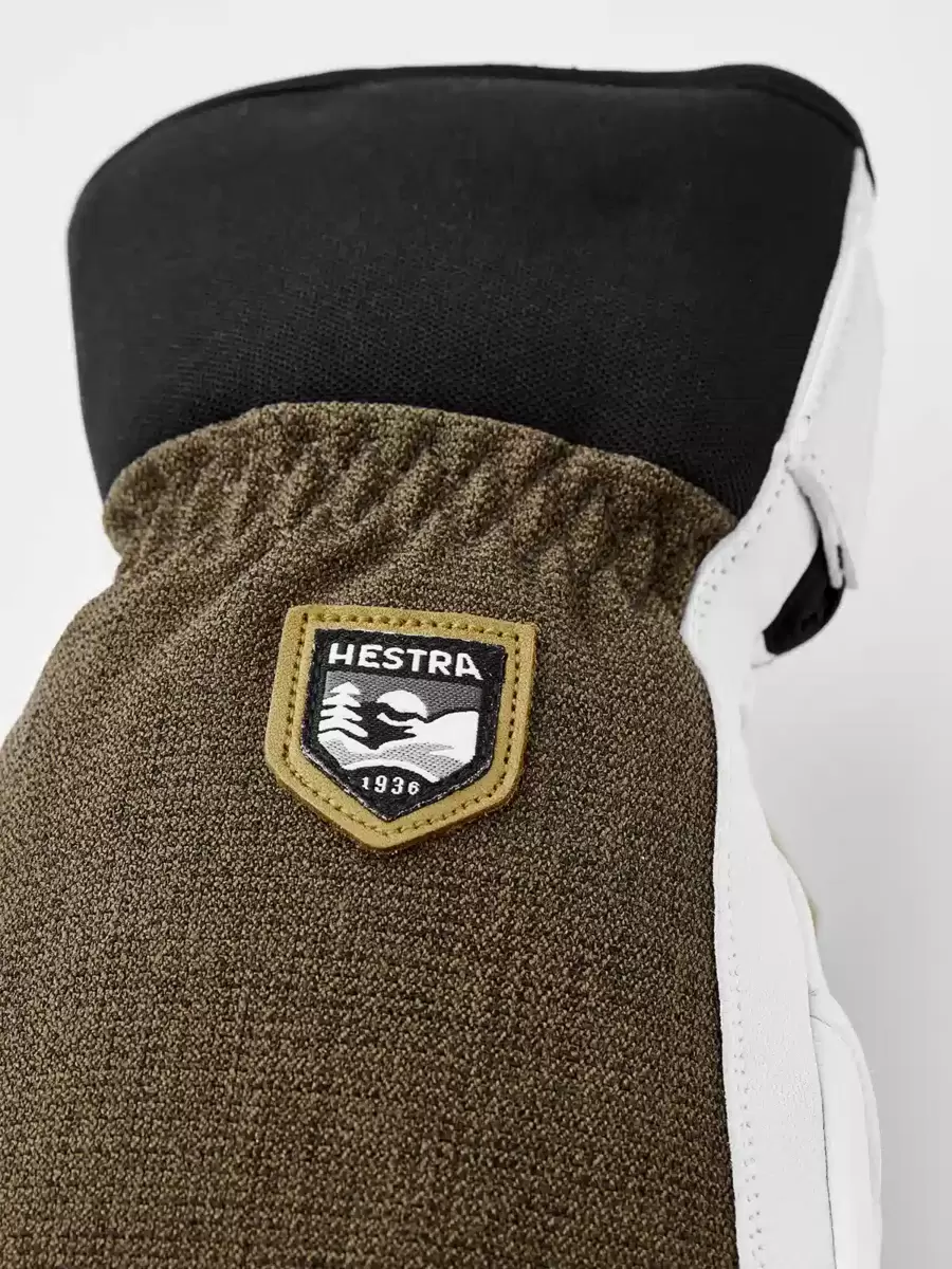 Army Leather Patrol är en varm 3-fingers skidhandske med smarta funktioner. Den bygger på samma robusta koncept som Hestras Heli Ski-modell, men är designad för att bäras inuti en jackärm med en bekväm neoprenkrage som omsluter handleden. 3-fingersmodellen är för dig som letar efter en varmare handske som ändå bibehåller fingerfärdigheten. Fingrarna och handflatan är tillverkade av impregnerat getskinn medan baksidan är tillverkad av flexibelt och väderbeständigt softshell-tyg. Ett fleecefoder med syntetisk isolering håller fingrarna varma även vid låga temperaturer och kan enkelt tas ut för tvätt eller torkning. Du kan också byta ut isoleringen mot ett tunnare foder för att justera värmen om du till exempel vandrar och svettas mer. En handledsrem minskar risken för att tappa handsken om du till exempel har tagit av den för att justera din utrustning. En karbinhake ingår också tillsammans med en öljett och upphängningsögla, vilket ger flera fästalternativ. En slitstark och pålitlig följeslagare för dig som tillbringar långa dagar utomhus i snö och kyla, och som föredrar att komma bort från skidorten och dess bekvämligheter. Finns även som vante- och 5-fingermodell, samt som dammodell.