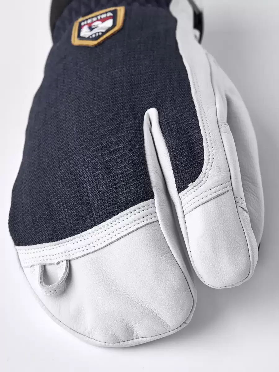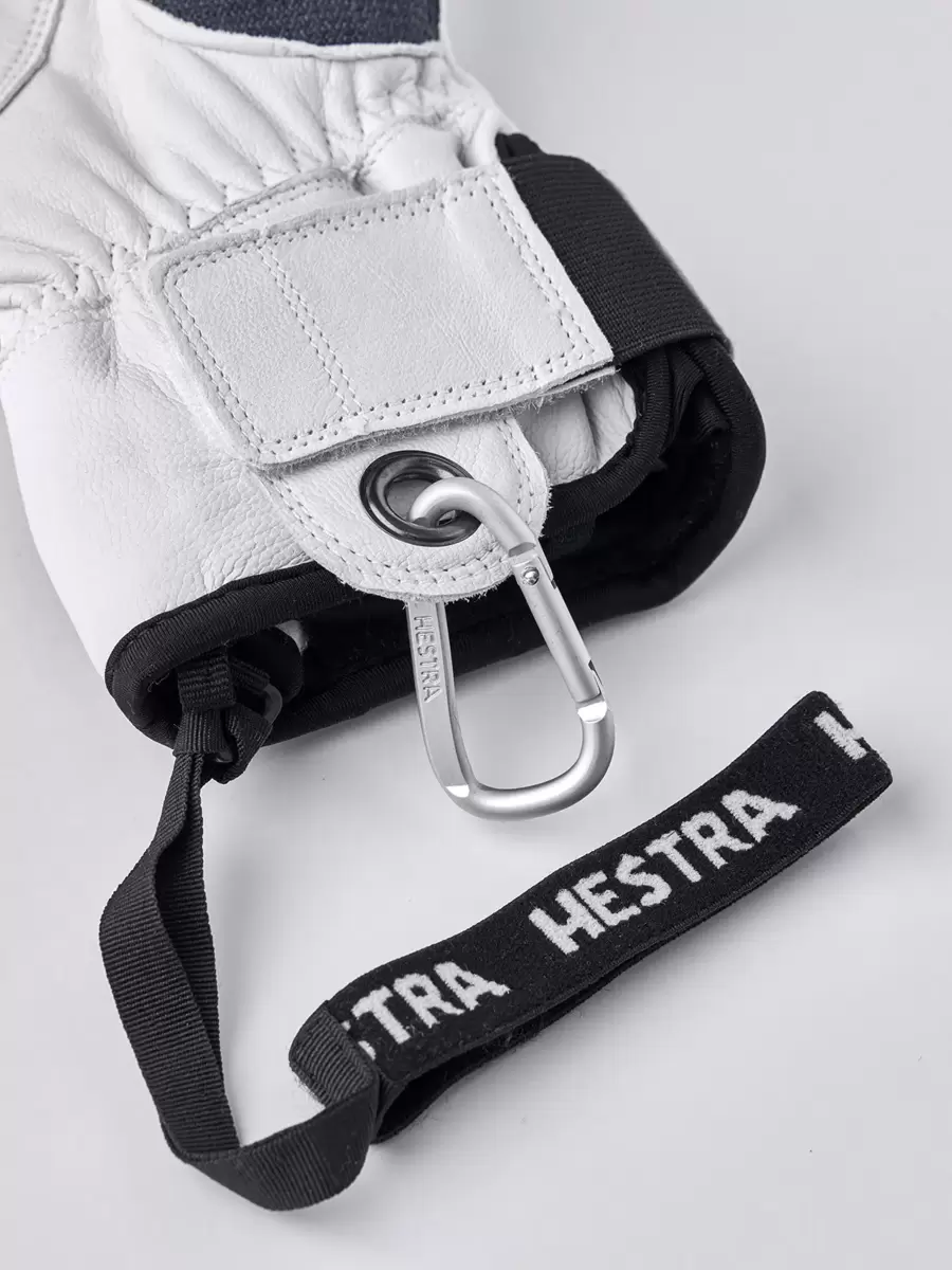 Army Leather Patrol är en varm 3-fingers skidhandske med smarta funktioner. Den bygger på samma robusta koncept som Hestras Heli Ski-modell, men är designad för att bäras inuti en jackärm med en bekväm neoprenkrage som omsluter handleden. 3-fingersmodellen är för dig som letar efter en varmare handske som ändå bibehåller fingerfärdigheten. Fingrarna och handflatan är tillverkade av impregnerat getskinn medan baksidan är tillverkad av flexibelt och väderbeständigt softshell-tyg. Ett fleecefoder med syntetisk isolering håller fingrarna varma även vid låga temperaturer och kan enkelt tas ut för tvätt eller torkning. Du kan också byta ut isoleringen mot ett tunnare foder för att justera värmen om du till exempel vandrar och svettas mer. En handledsrem minskar risken för att tappa handsken om du till exempel har tagit av den för att justera din utrustning. En karbinhake ingår också tillsammans med en öljett och upphängningsögla, vilket ger flera fästalternativ. En slitstark och pålitlig följeslagare för dig som tillbringar långa dagar utomhus i snö och kyla, och som föredrar att komma bort från skidorten och dess bekvämligheter. Finns även som vante- och 5-fingermodell, samt som dammodell.