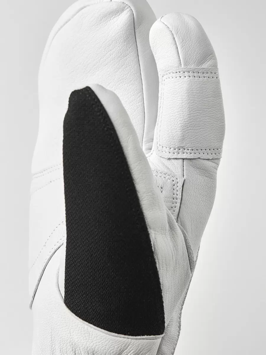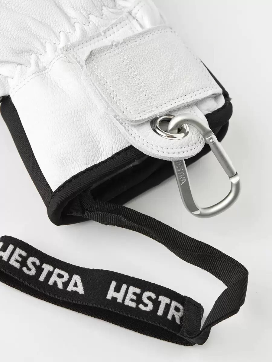 Army Leather Patrol är en varm 3-fingers skidhandske med smarta funktioner. Den bygger på samma robusta koncept som Hestras Heli Ski-modell, men är designad för att bäras inuti en jackärm med en bekväm neoprenkrage som omsluter handleden. 3-fingersmodellen är för dig som letar efter en varmare handske som ändå bibehåller fingerfärdigheten. Fingrarna och handflatan är tillverkade av impregnerat getskinn medan baksidan är tillverkad av flexibelt och väderbeständigt softshell-tyg. Ett fleecefoder med syntetisk isolering håller fingrarna varma även vid låga temperaturer och kan enkelt tas ut för tvätt eller torkning. Du kan också byta ut isoleringen mot ett tunnare foder för att justera värmen om du till exempel vandrar och svettas mer. En handledsrem minskar risken för att tappa handsken om du till exempel har tagit av den för att justera din utrustning. En karbinhake ingår också tillsammans med en öljett och upphängningsögla, vilket ger flera fästalternativ. En slitstark och pålitlig följeslagare för dig som tillbringar långa dagar utomhus i snö och kyla, och som föredrar att komma bort från skidorten och dess bekvämligheter. Finns även som vante- och 5-fingermodell, samt som dammodell.