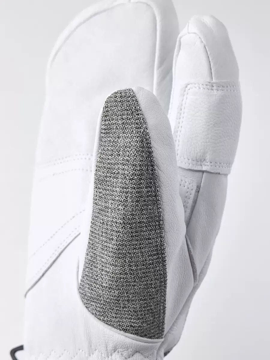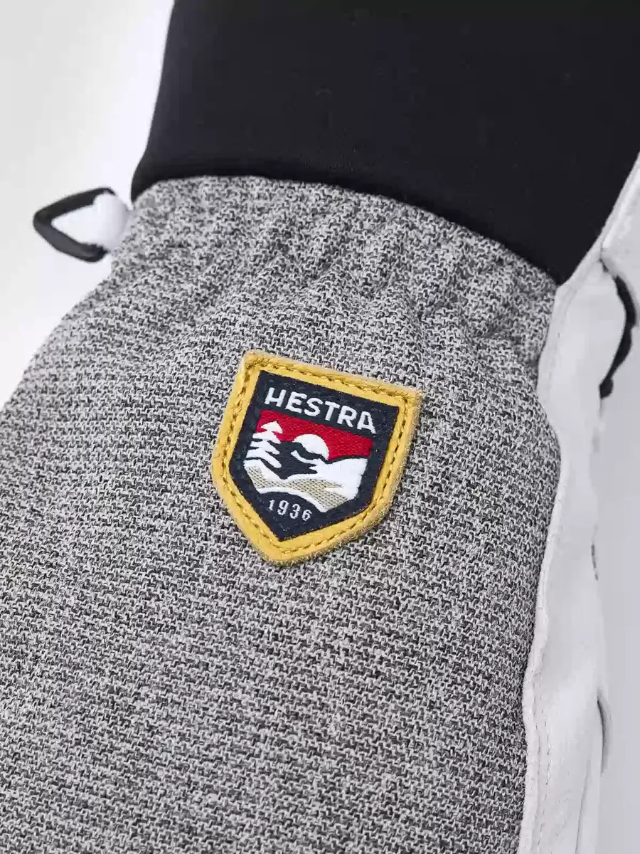 Army Leather Patrol är en varm 3-fingers skidhandske med smarta funktioner. Den bygger på samma robusta koncept som Hestras Heli Ski-modell, men är designad för att bäras inuti en jackärm med en bekväm neoprenkrage som omsluter handleden. 3-fingersmodellen är för dig som letar efter en varmare handske som ändå bibehåller fingerfärdigheten. Fingrarna och handflatan är tillverkade av impregnerat getskinn medan baksidan är tillverkad av flexibelt och väderbeständigt softshell-tyg. Ett fleecefoder med syntetisk isolering håller fingrarna varma även vid låga temperaturer och kan enkelt tas ut för tvätt eller torkning. Du kan också byta ut isoleringen mot ett tunnare foder för att justera värmen om du till exempel vandrar och svettas mer. En handledsrem minskar risken för att tappa handsken om du till exempel har tagit av den för att justera din utrustning. En karbinhake ingår också tillsammans med en öljett och upphängningsögla, vilket ger flera fästalternativ. En slitstark och pålitlig följeslagare för dig som tillbringar långa dagar utomhus i snö och kyla, och som föredrar att komma bort från skidorten och dess bekvämligheter. Finns även som vante- och 5-fingermodell, samt som dammodell.