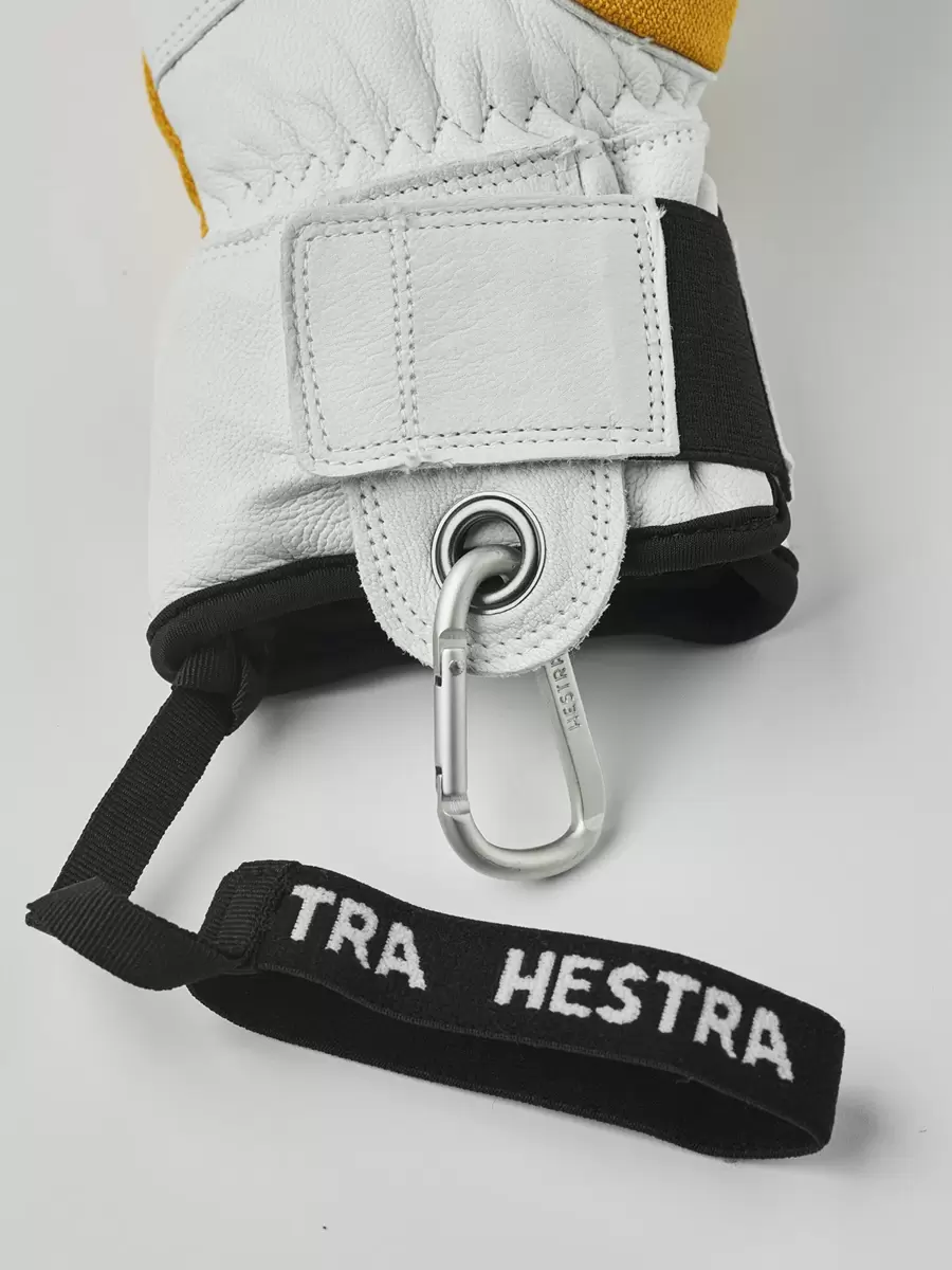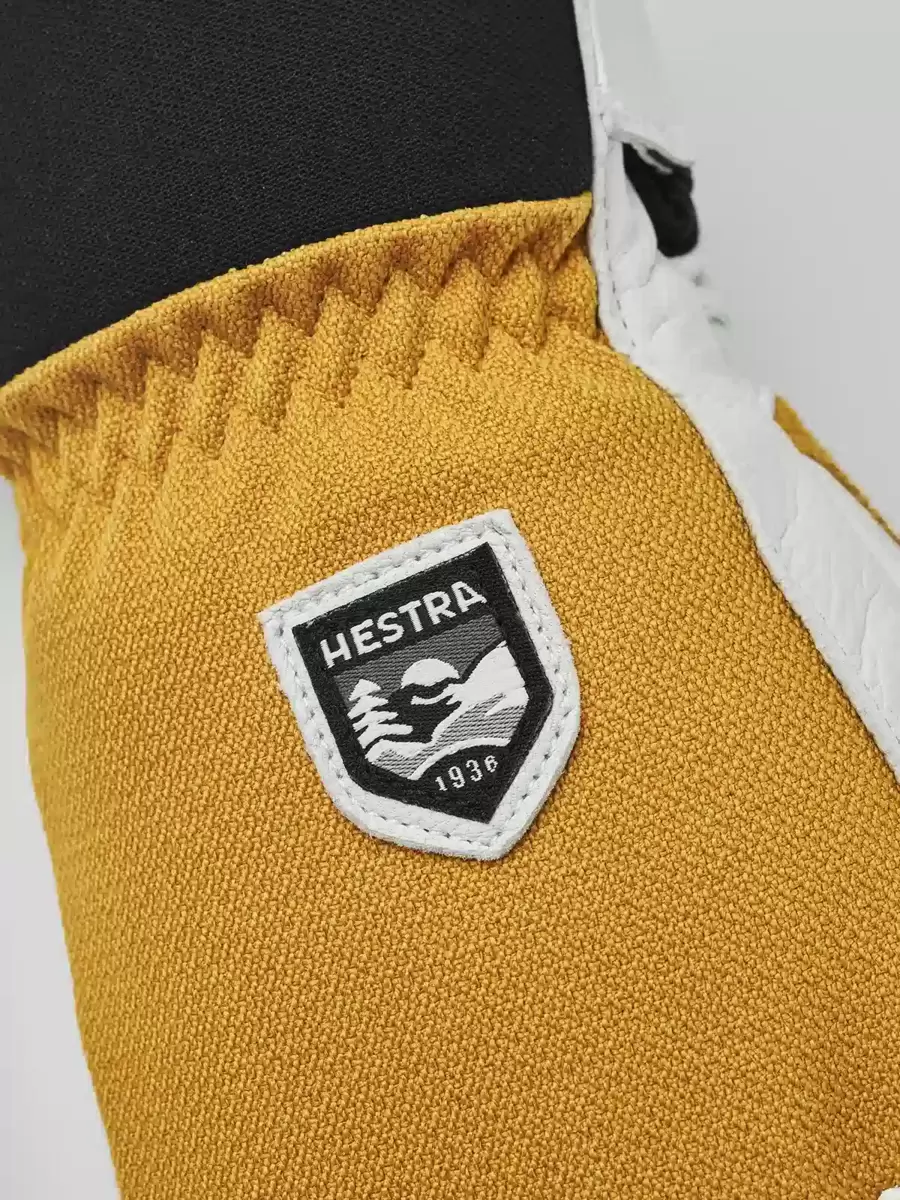 Army Leather Patrol är en varm 3-fingers skidhandske med smarta funktioner. Den bygger på samma robusta koncept som Hestras Heli Ski-modell, men är designad för att bäras inuti en jackärm med en bekväm neoprenkrage som omsluter handleden. 3-fingersmodellen är för dig som letar efter en varmare handske som ändå bibehåller fingerfärdigheten. Fingrarna och handflatan är tillverkade av impregnerat getskinn medan baksidan är tillverkad av flexibelt och väderbeständigt softshell-tyg. Ett fleecefoder med syntetisk isolering håller fingrarna varma även vid låga temperaturer och kan enkelt tas ut för tvätt eller torkning. Du kan också byta ut isoleringen mot ett tunnare foder för att justera värmen om du till exempel vandrar och svettas mer. En handledsrem minskar risken för att tappa handsken om du till exempel har tagit av den för att justera din utrustning. En karbinhake ingår också tillsammans med en öljett och upphängningsögla, vilket ger flera fästalternativ. En slitstark och pålitlig följeslagare för dig som tillbringar långa dagar utomhus i snö och kyla, och som föredrar att komma bort från skidorten och dess bekvämligheter. Finns även som vante- och 5-fingermodell, samt som dammodell.
