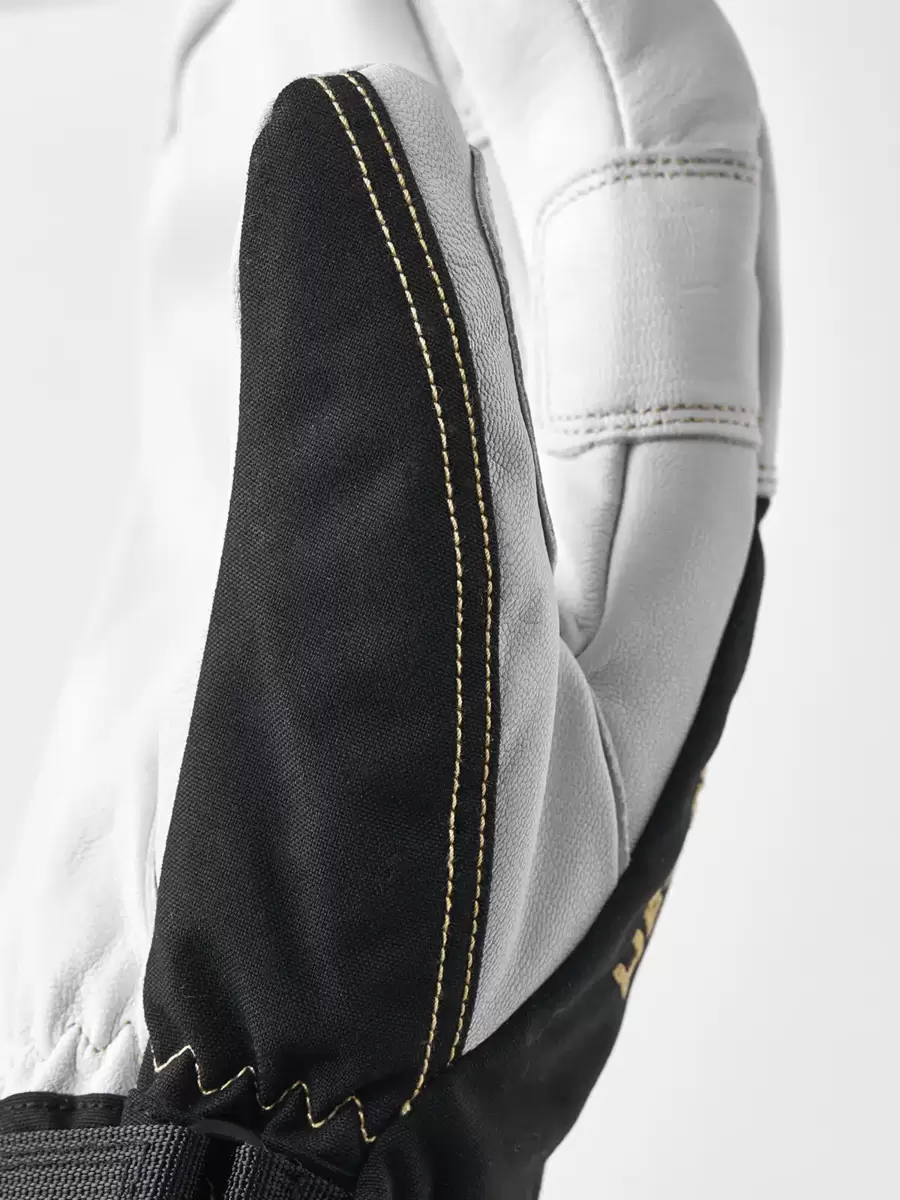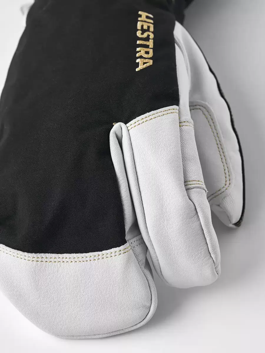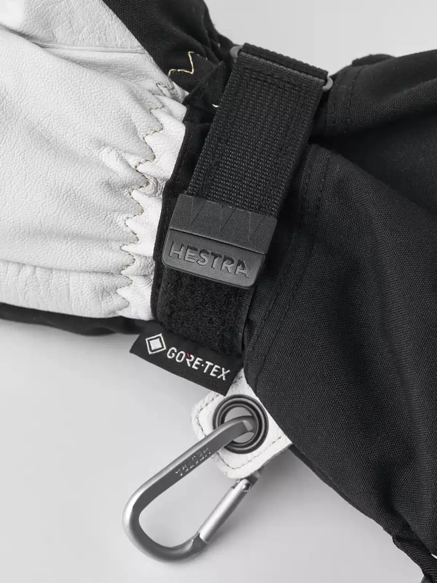 Army Leather GORE-TEX* är en varm 3-fingerhandske för skidåkning i tuffa väderförhållanden. Som 3-fingermodell erbjuder den något mer värme samtidigt som den bibehåller en viss fingertoppskänsla. Sydd i slitstarkt getskinn och kraftigt återvunnet polyamidtyg. Passformen är förböjd för komfort och grepp. Ett fleecefoder med G-Loft syntetisk isolering håller kylan ute.
