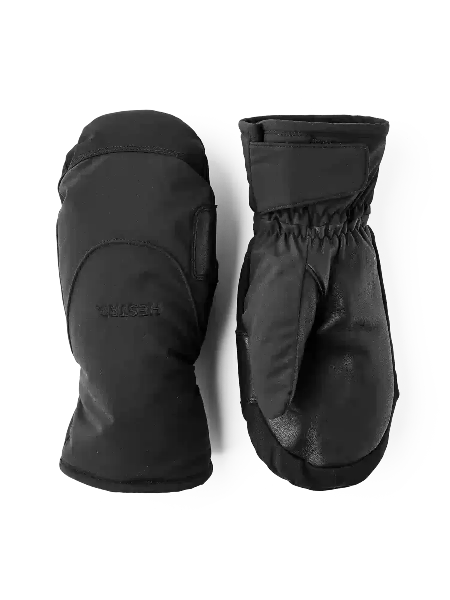 Detta är en smidig vante med en baksida och sidopartier av polyamidtyg, medan den behandlade lammnappa-handflatan ger bra grepp. Den korta mudden justeras med kardborreband på insidan av handleden innan skidjackans ärm dras över.
