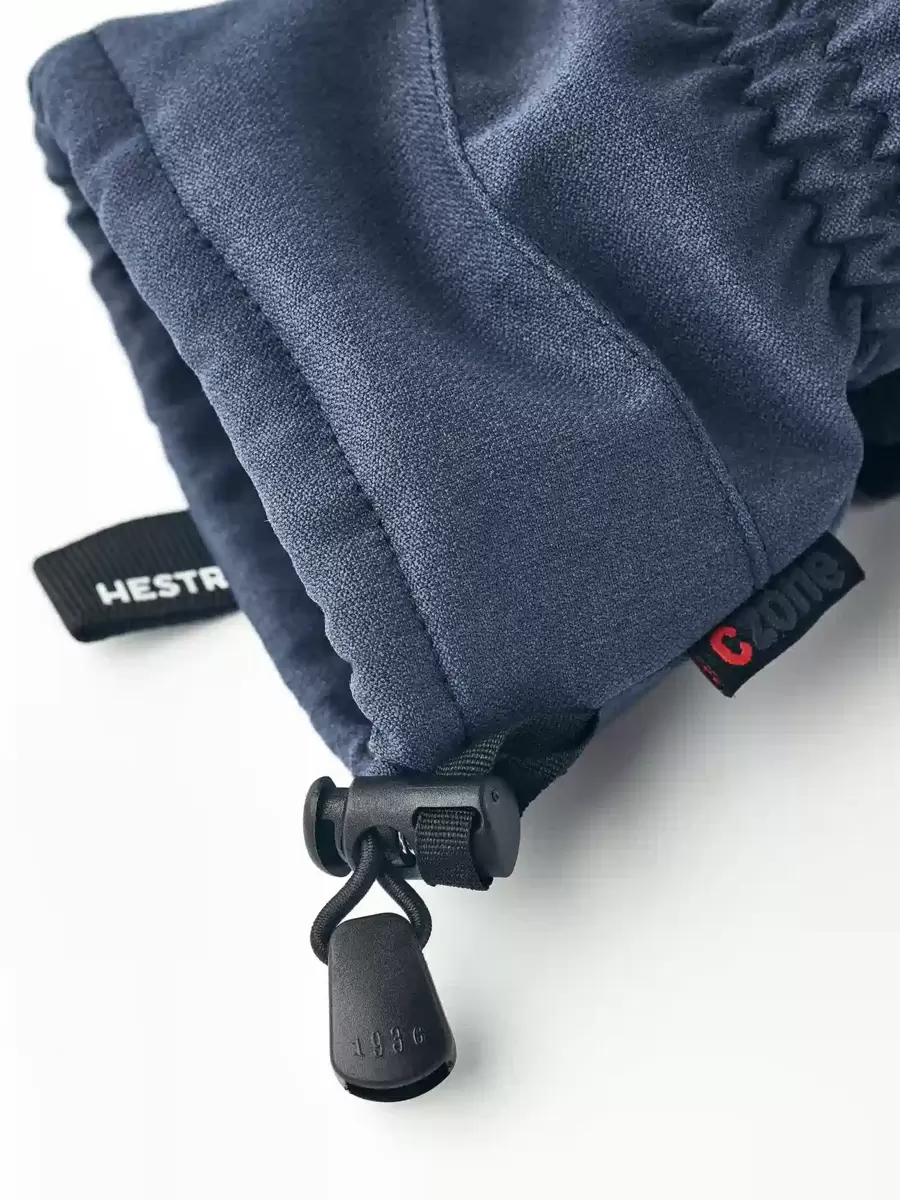 CZone Mountain är en varm och väderbeständig 5-fingerhandske med ett brett användningsområde. Den har en lång mudd med en elastisk dragsko för att hålla snö borta från dina händer och handleder. Handledsvidden justeras enkelt med kardborreband. Den levereras också med ett handledsremfäste (tillbehör).