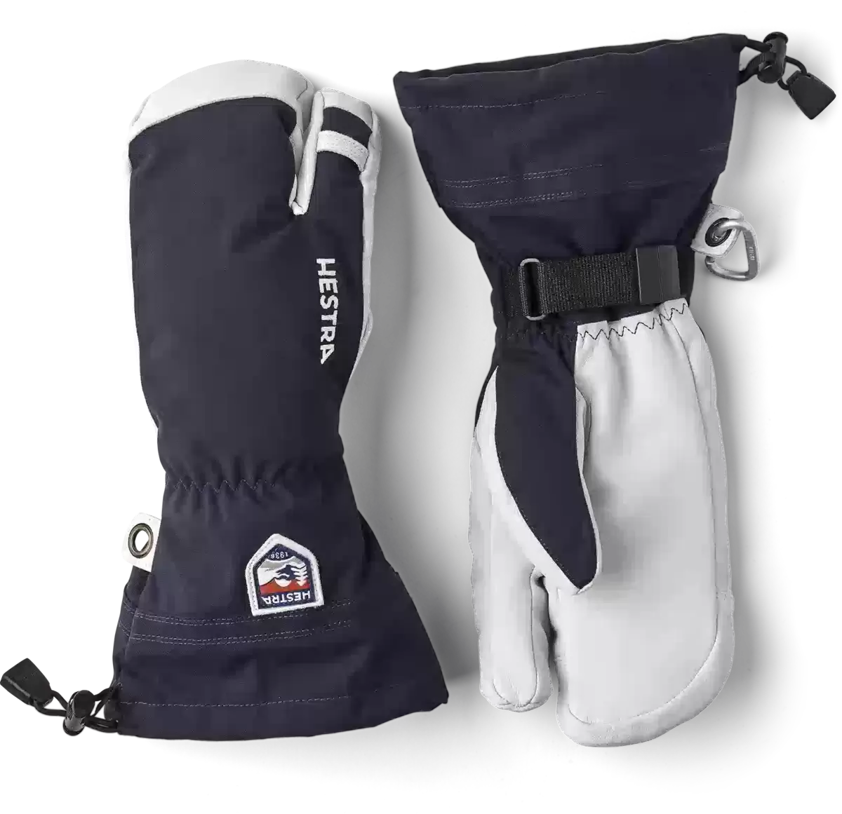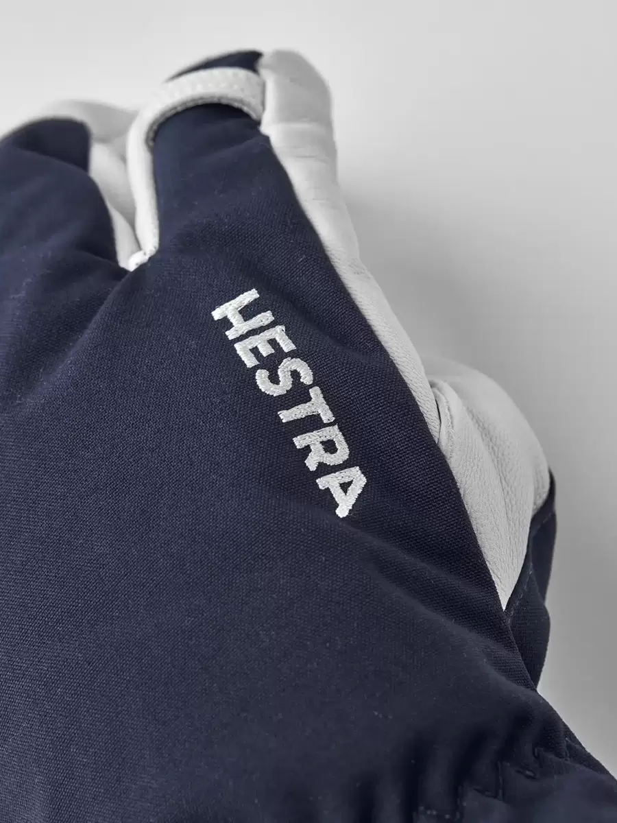 Hestras Army Leather Heli Ski skapades ursprungligen för skidguider i västra Kanada som behövde en pålitlig och varm skidhandske för långa dagar i snö och kyla. Tillverkad av slitstarkt getläder som ger exceptionellt grepp och känsla, och med en vattenavvisande trelagers polyamidväv på handsken. Denna 3-fingermodell är för dig som söker mer värme men som fortfarande behöver bibehålla förmågan att arbeta med fingrarna, och den har en rad smarta funktioner som hjälper när du inte kan gå in för att värma dig så ofta. Fodret är till exempel enkelt att ta ut och byta om det blir fuktigt eller för att anpassa sig till varierande aktivitetsnivåer och temperaturer. Och den långa kragen har ett snölås som, tillsammans med ett kardborreband på handleden, säkerställer att värmen stannar kvar inuti handsken. Ett handledsband minskar risken för att tappa handsken om du tar av den för att svara i telefon eller justera din utrustning. Den medföljande karbinhaken och läderöglan på lillfingret låter dig också hänga handsken med öppningen nedåt på dina skidbyxor eller klättersele – praktiskt för att undvika att den fylls med snö om du bara arbetar med tunna liners på händerna. En slitstark och flexibel följeslagare för skidåkare som tillbringar mycket tid utomhus och som ofta befinner sig långt från skidorten och dess bekvämligheter. Finns även i mitt- och 5-fingermodell.