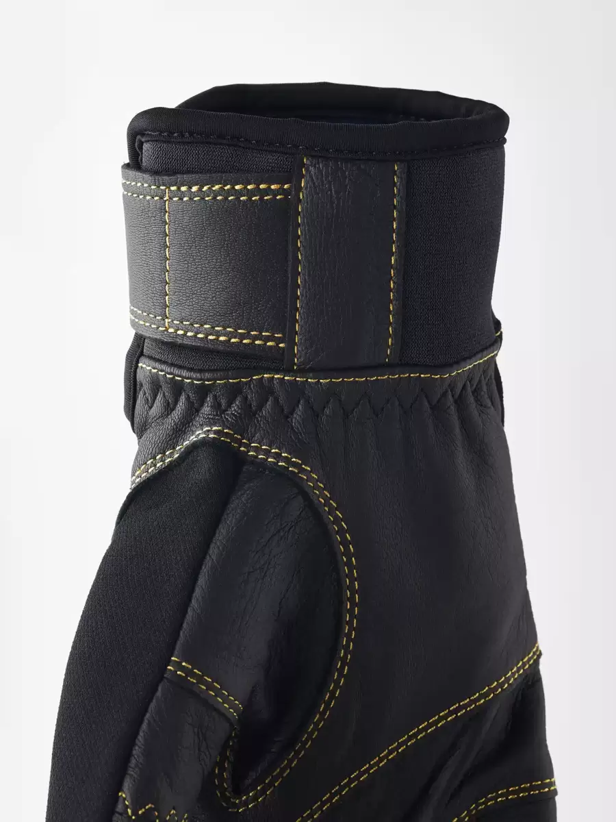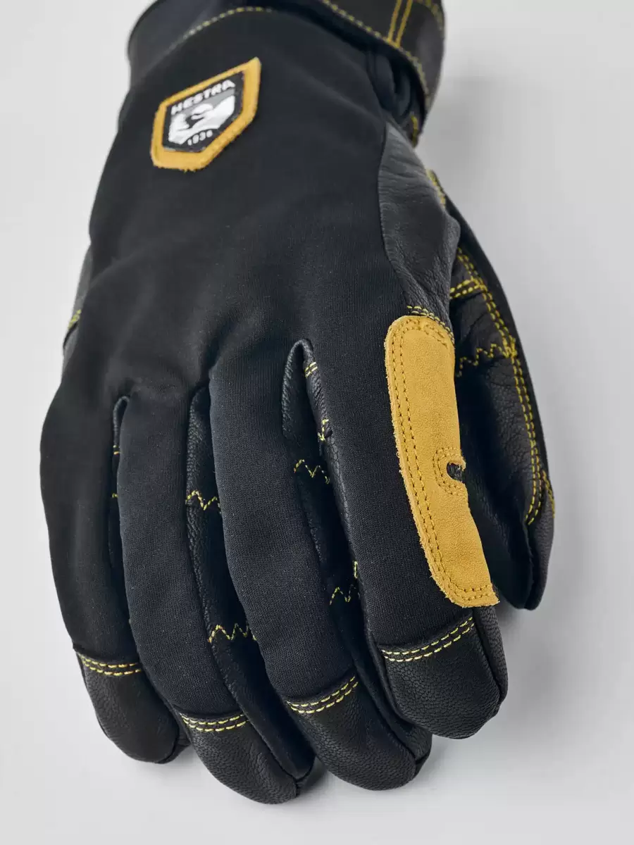 Army Leather Patrol är en varm, slitstark 5-fingers skidhandske med smarta funktioner. Den bygger på samma robusta koncept som Hestras Heli Ski-modell, men är designad för att bäras under jackärmen med en bekväm neoprenkrage som omsluter handleden. Fingrar och handflata är tillverkade av impregnerat getskinn med yttersömmar som ger komfort och ett känsligt grepp, medan baksidan är tillverkad av flexibelt och väderbeständigt softshell-tyg. Ett fleecefoder med syntetisk isolering håller fingrarna varma även i låga temperaturer och kan enkelt tas bort för tvätt eller torkning. Du kan också byta ut isoleringen mot ett tunnare foder för att justera värmen om du till exempel vandrar och svettas mer. En handledsrem minskar risken för att tappa handsken om du tar av den för att justera din utrustning. En karbinhake ingår också tillsammans med en ögla och upphängningsögla, vilket ger flera fästalternativ. En slitstark och pålitlig följeslagare för dig som tillbringar långa dagar utomhus i snö och kyla, och som föredrar att komma bort från skidorten och dess bekvämligheter. Finns även i vante- och 3-fingermodell, samt en dammodell.