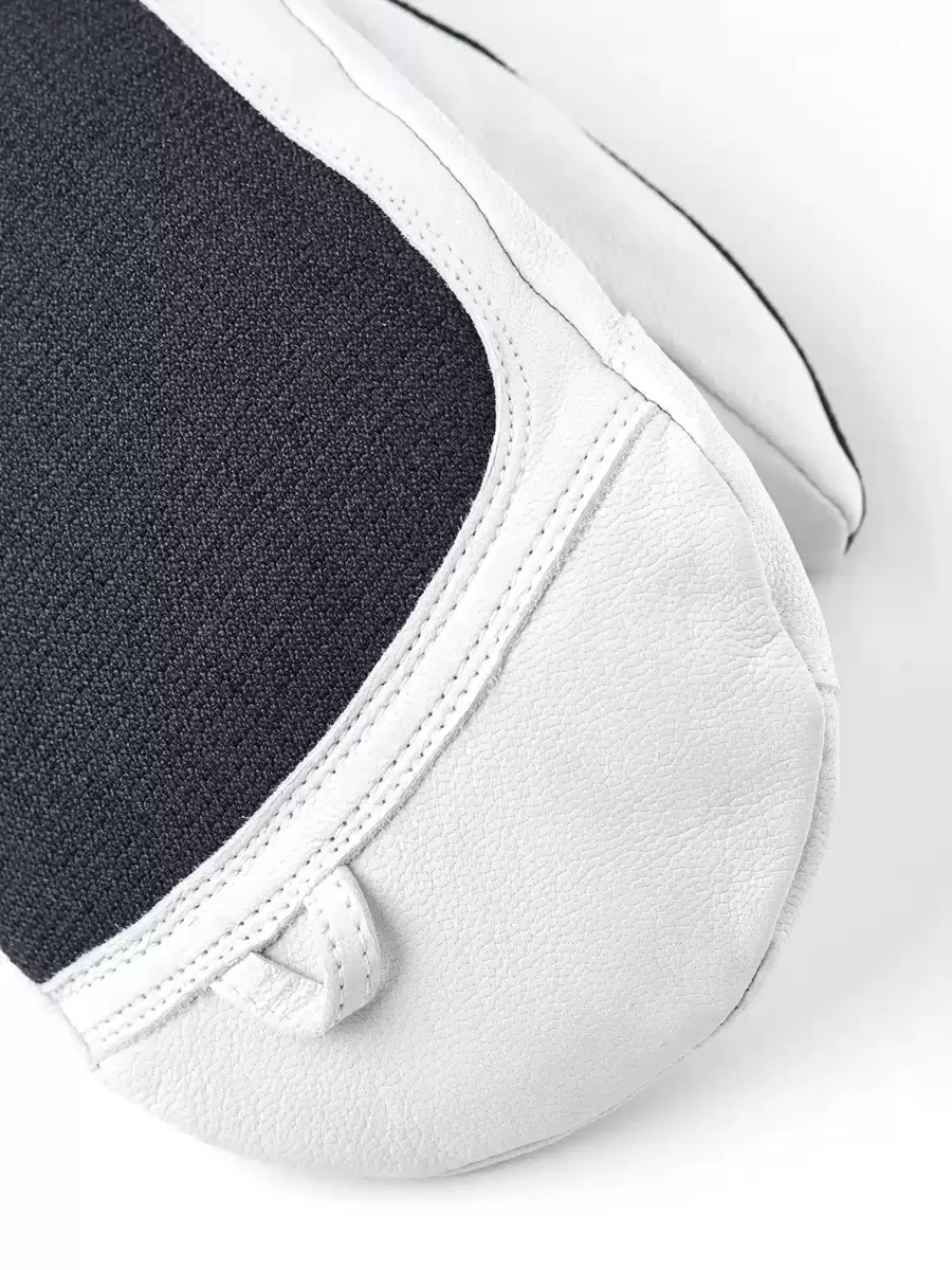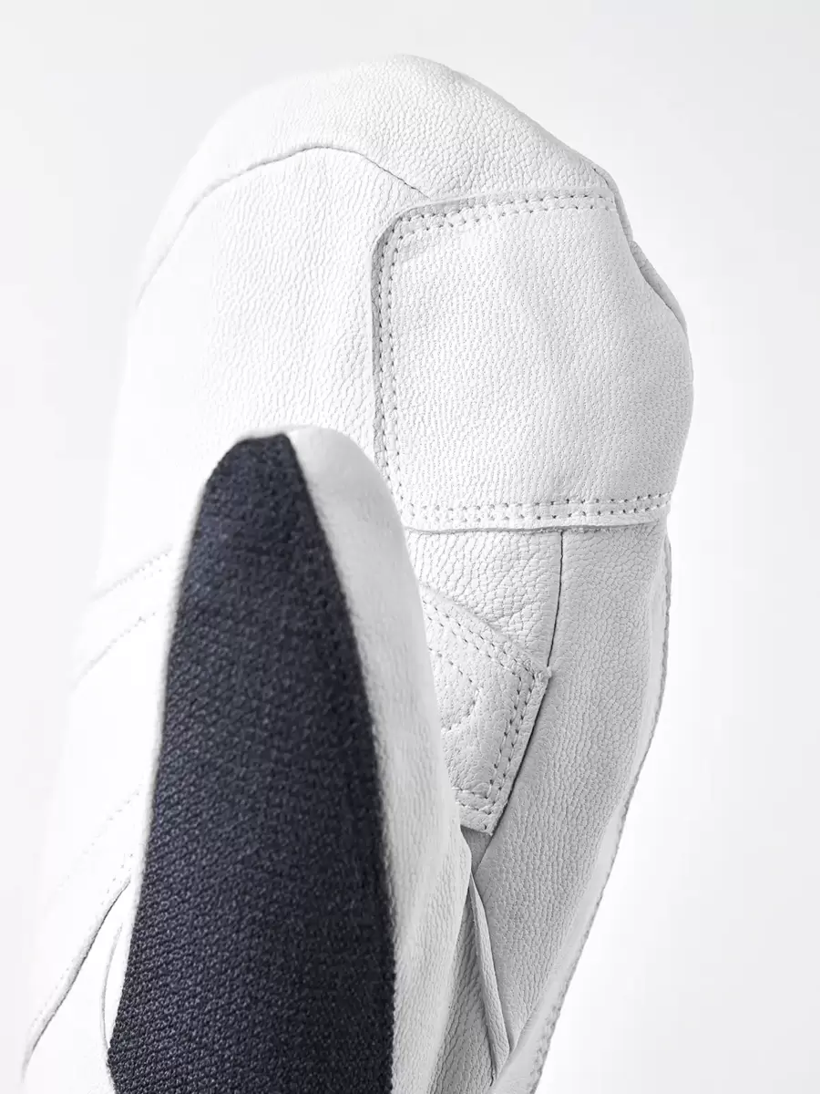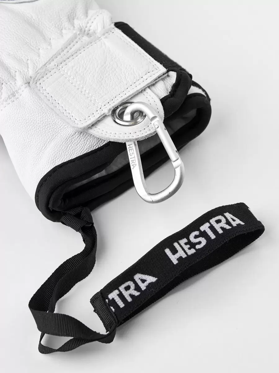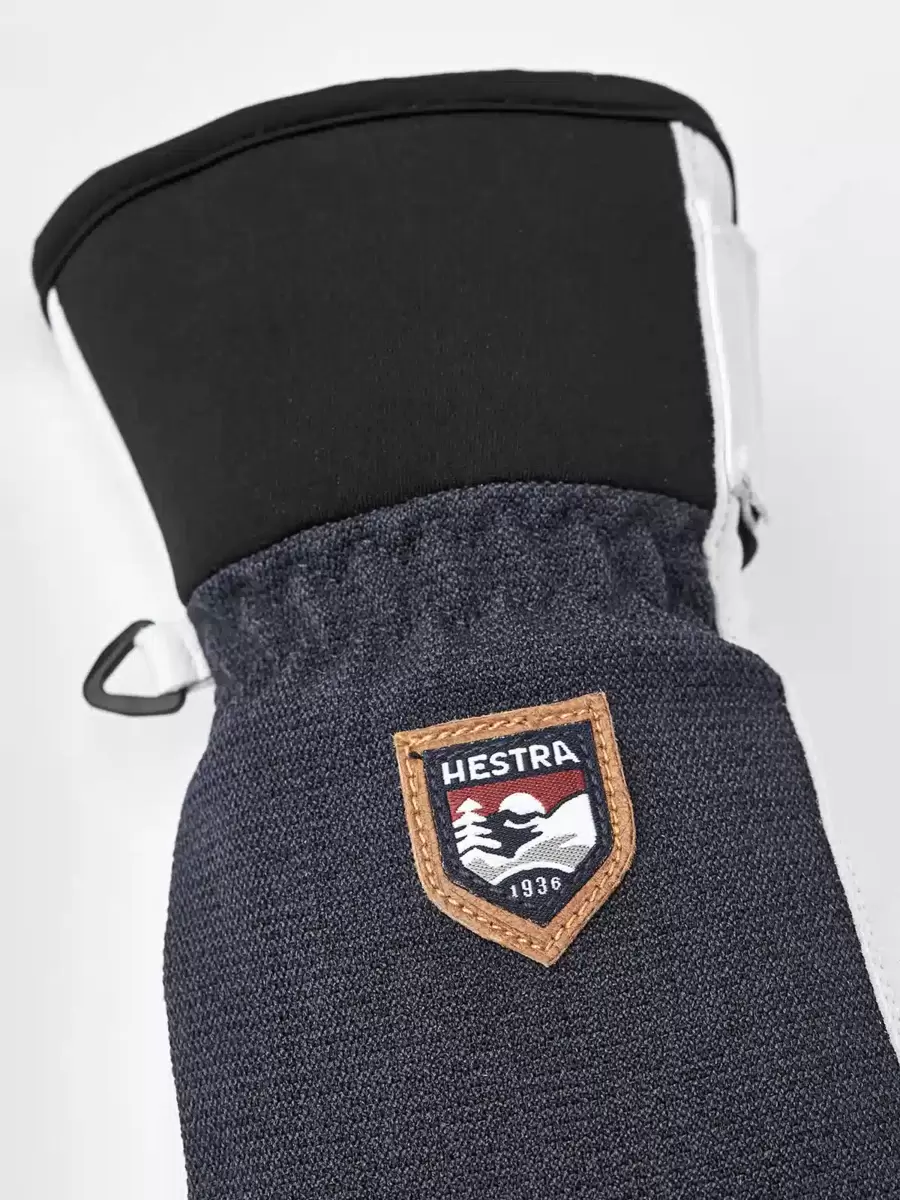 Army Leather Patrol är en varm, slitstark 5-fingers skidhandske med smarta funktioner. Den bygger på samma robusta koncept som Hestras Heli Ski-modell, men är designad för att bäras under jackärmen med en bekväm neoprenkrage som omsluter handleden. Fingrar och handflata är tillverkade av impregnerat getskinn med yttersömmar som ger komfort och ett känsligt grepp, medan baksidan är tillverkad av flexibelt och väderbeständigt softshell-tyg. Ett fleecefoder med syntetisk isolering håller fingrarna varma även i låga temperaturer och kan enkelt tas bort för tvätt eller torkning. Du kan också byta ut isoleringen mot ett tunnare foder för att justera värmen om du till exempel vandrar och svettas mer. En handledsrem minskar risken för att tappa handsken om du tar av den för att justera din utrustning. En karbinhake ingår också tillsammans med en ögla och upphängningsögla, vilket ger flera fästalternativ. En slitstark och pålitlig följeslagare för dig som tillbringar långa dagar utomhus i snö och kyla, och som föredrar att komma bort från skidorten och dess bekvämligheter. Finns även i vante- och 3-fingermodell, samt en dammodell.