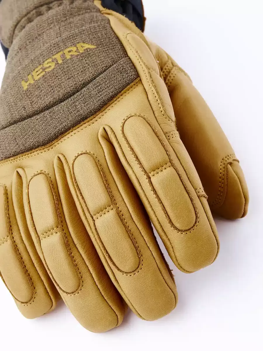 Army Leather Patrol är en varm, slitstark 5-fingers skidhandske med smarta funktioner. Den bygger på samma robusta koncept som Hestras Heli Ski-modell, men är designad för att bäras under jackärmen med en bekväm neoprenkrage som omsluter handleden. Fingrar och handflata är tillverkade av impregnerat getskinn med yttersömmar som ger komfort och ett känsligt grepp, medan baksidan är tillverkad av flexibelt och väderbeständigt softshell-tyg. Ett fleecefoder med syntetisk isolering håller fingrarna varma även i låga temperaturer och kan enkelt tas bort för tvätt eller torkning. Du kan också byta ut isoleringen mot ett tunnare foder för att justera värmen om du till exempel vandrar och svettas mer. En handledsrem minskar risken för att tappa handsken om du tar av den för att justera din utrustning. En karbinhake ingår också tillsammans med en ögla och upphängningsögla, vilket ger flera fästalternativ. En slitstark och pålitlig följeslagare för dig som tillbringar långa dagar utomhus i snö och kyla, och som föredrar att komma bort från skidorten och dess bekvämligheter. Finns även i vante- och 3-fingermodell, samt en dammodell.