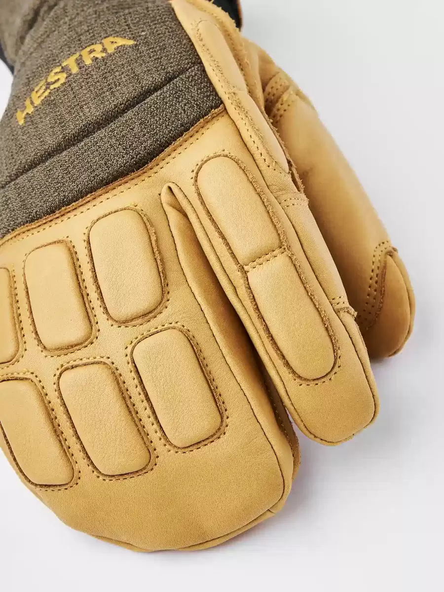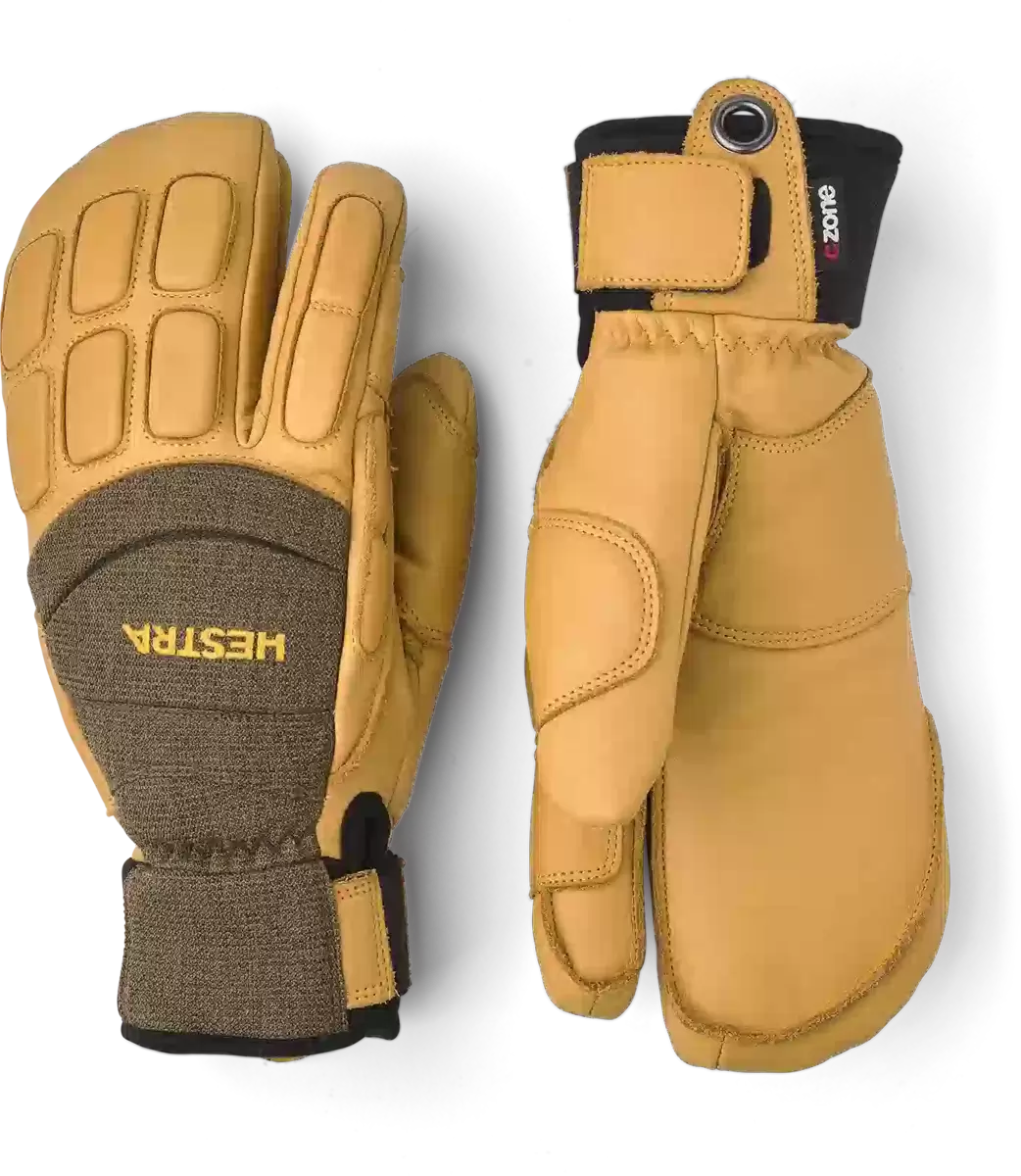 Hestras Vertical Cut CZone är en praktisk 3-finger skidhandske för freeriding och snowboard. Tillverkad av slitstark getnappa* med förstärkningar på utsatta delar. Ett CZone-membran skyddar mot vatten och släpper ut fukt, medan G-Loft syntetfyllning isolerar under de långa vinterdagarna på berget. Handsken har yttersömmar för bättre komfort och stavgrepp. Skumpaneler på handens ovansida skyddar mot fall och stötar. En neoprenmanschett ger bättre passform och håller värmen inuti handsken, samtidigt som den kan glida smidigt inuti jackärmen. Andra smarta detaljer inkluderar handledsremmen som minskar risken för att du tappar handsken, och en karbinhake för att fästa den i din ryggsäck. 3-fingermodellen är för dig som letar efter en varmare handske samtidigt som den bibehåller fingerfärdigheten. Finns även i 5-fingermodell. * färgerna 280701 och 870701 är tillverkade av kohud.