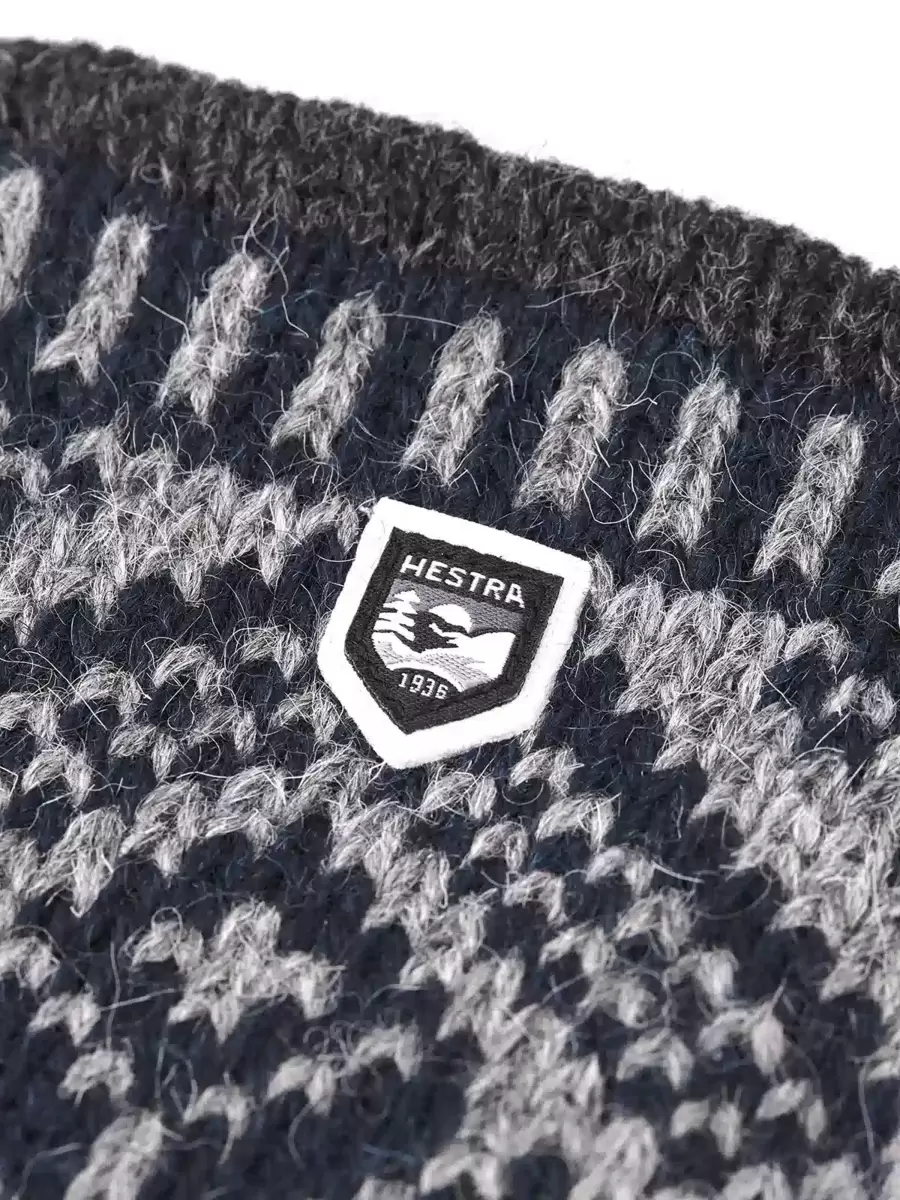 En retroinspirerad stickad vante i mjuk, värmande ull. Stickad i en klassisk nordisk Fair Isle-design i ullgarn blandat med lite polyamid för extra styrka. Manschetten är rak och avslutad med en dekorativ kontrastfärg. Ett stickat foder i en ullblandning ger extra värme. En vacker, värmande vante för frostiga höst- och vinterdagar.