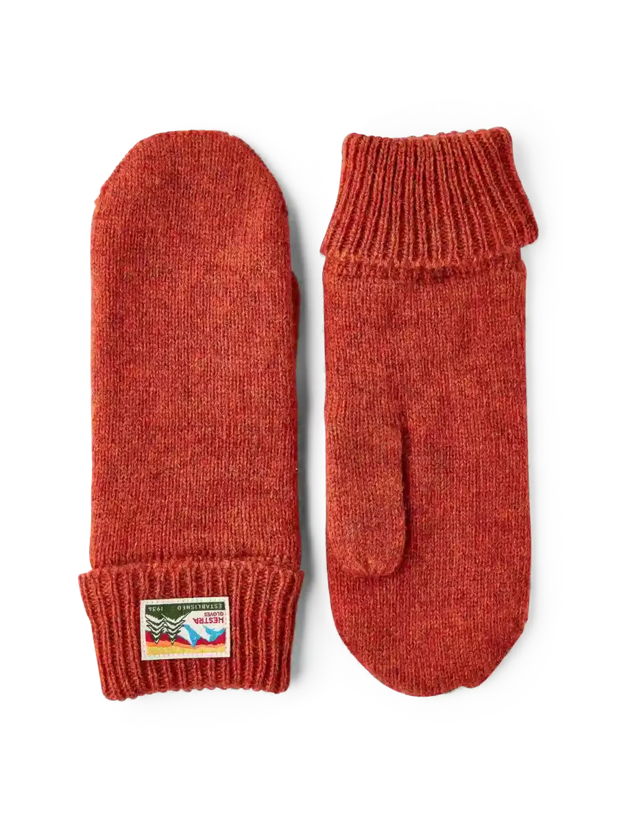 Klassisk slätstickad vante i mjukt melerat ullgarn. En mångsidig, lättanvänd vardagsvante för höst och mildare vinterdagar, och lätt att stoppa i fickan när den inte används. Dubbel ribbad mudd med en vävd Hestra-logotyp på utsidan av handleden och ett tunt stickat ull-/polyamidfoder som ger extra värme runt fingrarna.