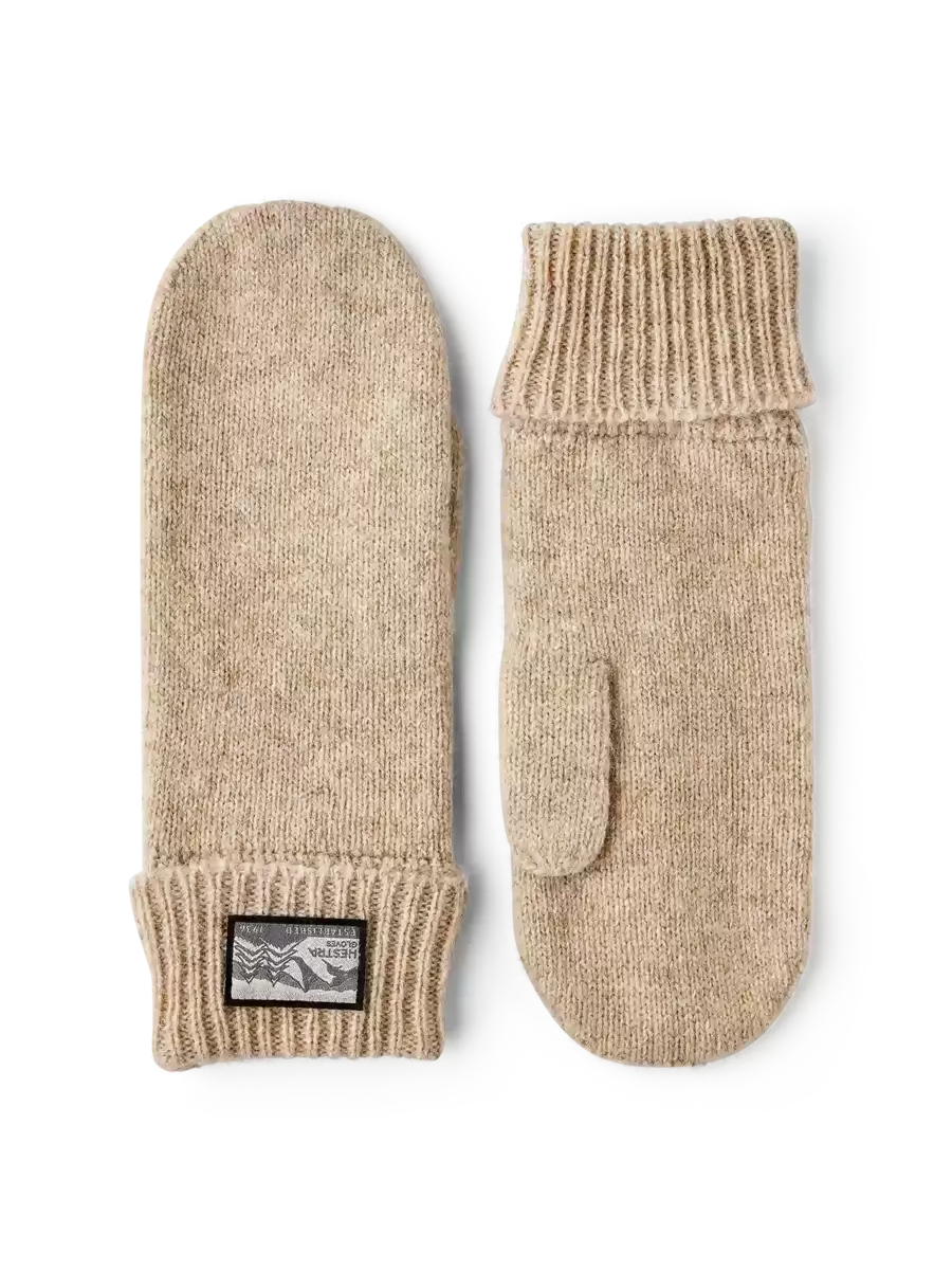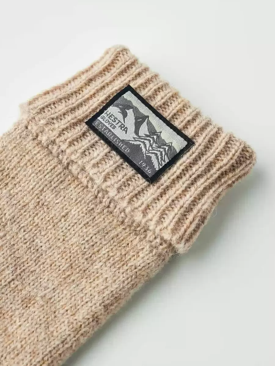 Klassisk slätstickad vante i mjukt melerat ullgarn. En mångsidig, lättanvänd vardagsvante för höst och mildare vinterdagar, och lätt att stoppa i fickan när den inte används. Dubbel ribbad mudd med en vävd Hestra-logotyp på utsidan av handleden och ett tunt stickat ull-/polyamidfoder som ger extra värme runt fingrarna.