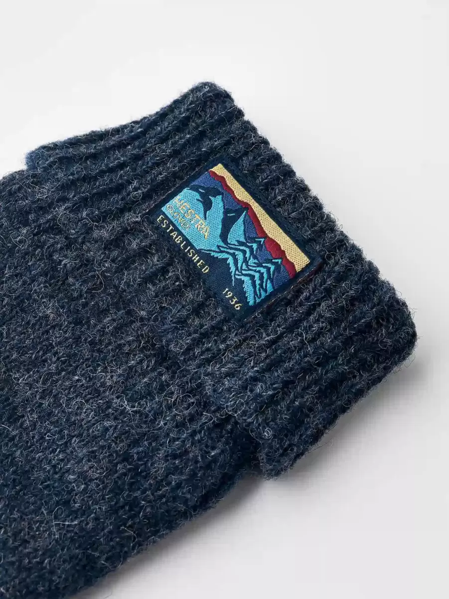 Klassisk slätstickad vante i mjukt melerat ullgarn. En mångsidig, lättanvänd vardagsvante för höst och mildare vinterdagar, och lätt att stoppa i fickan när den inte används. Dubbel ribbad mudd med en vävd Hestra-logotyp på utsidan av handleden och ett tunt stickat ull-/polyamidfoder som ger extra värme runt fingrarna.